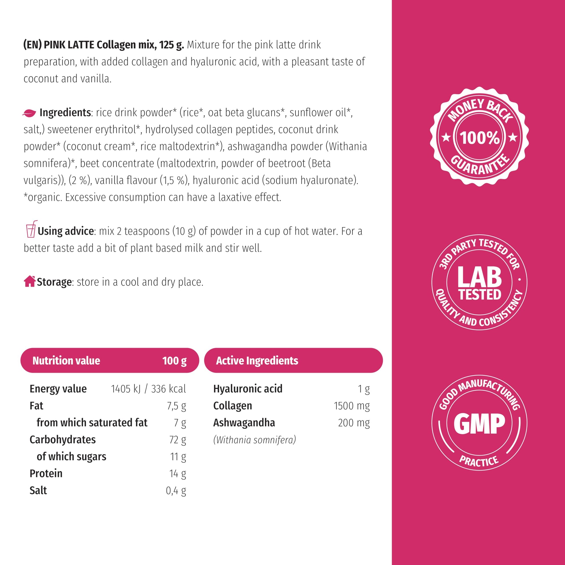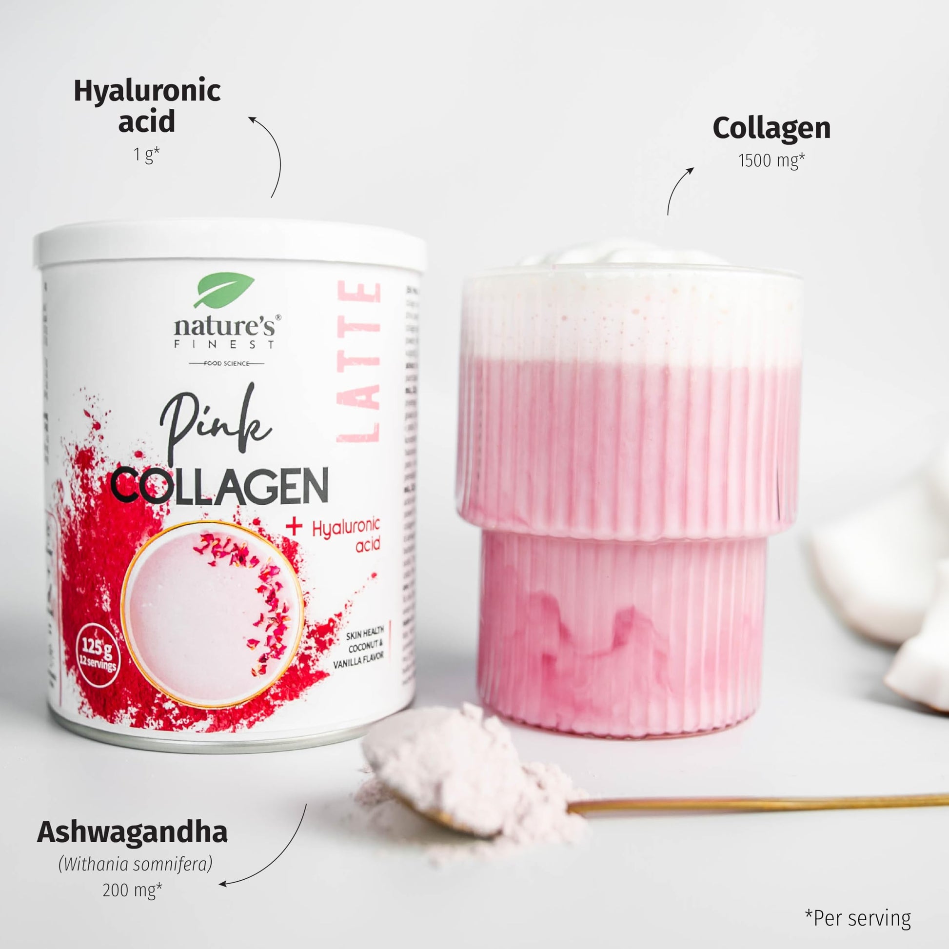 Nature's Finest by Nutrisslim PINK LATTE with Collagen and Hyaluronic Acid 125 g | Coconut and vanilla flavored drink, lactose and sugar free (1)