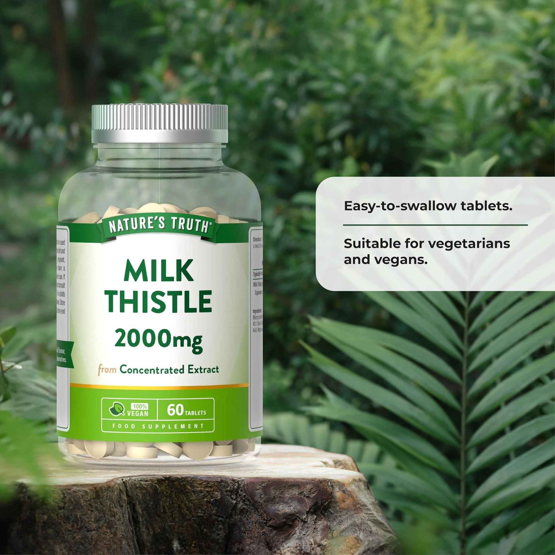 Nature's Truth Milk Thistle Tablets - 2000mg High Strength Milk Thistle Supplement - 60 Tablets - Vegan