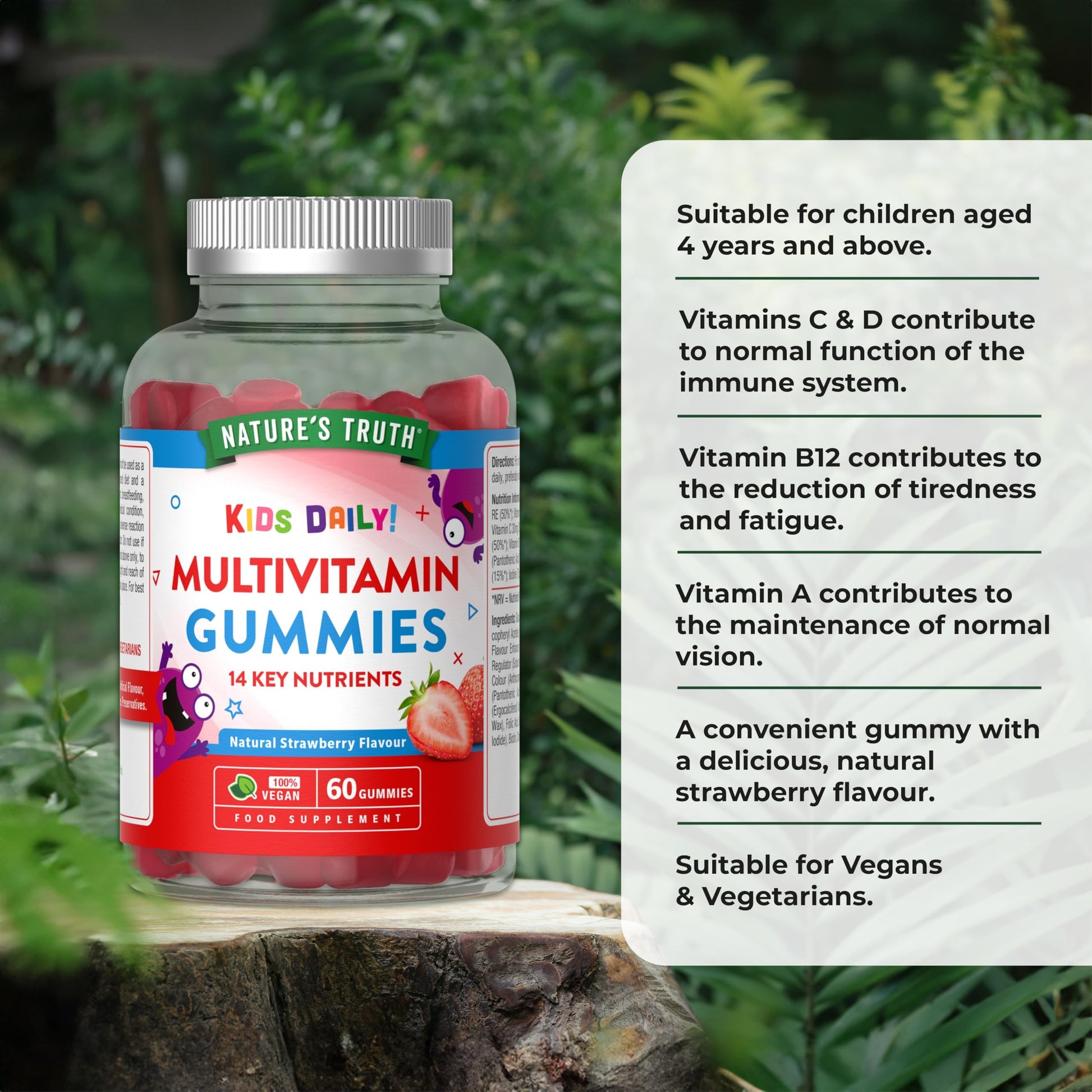 Nature's Truth Multivitamins for Kids - 60 Vegan Gummies - 14 Key Nutrients - One-a-Day Formula - Natural Strawberry Flavour