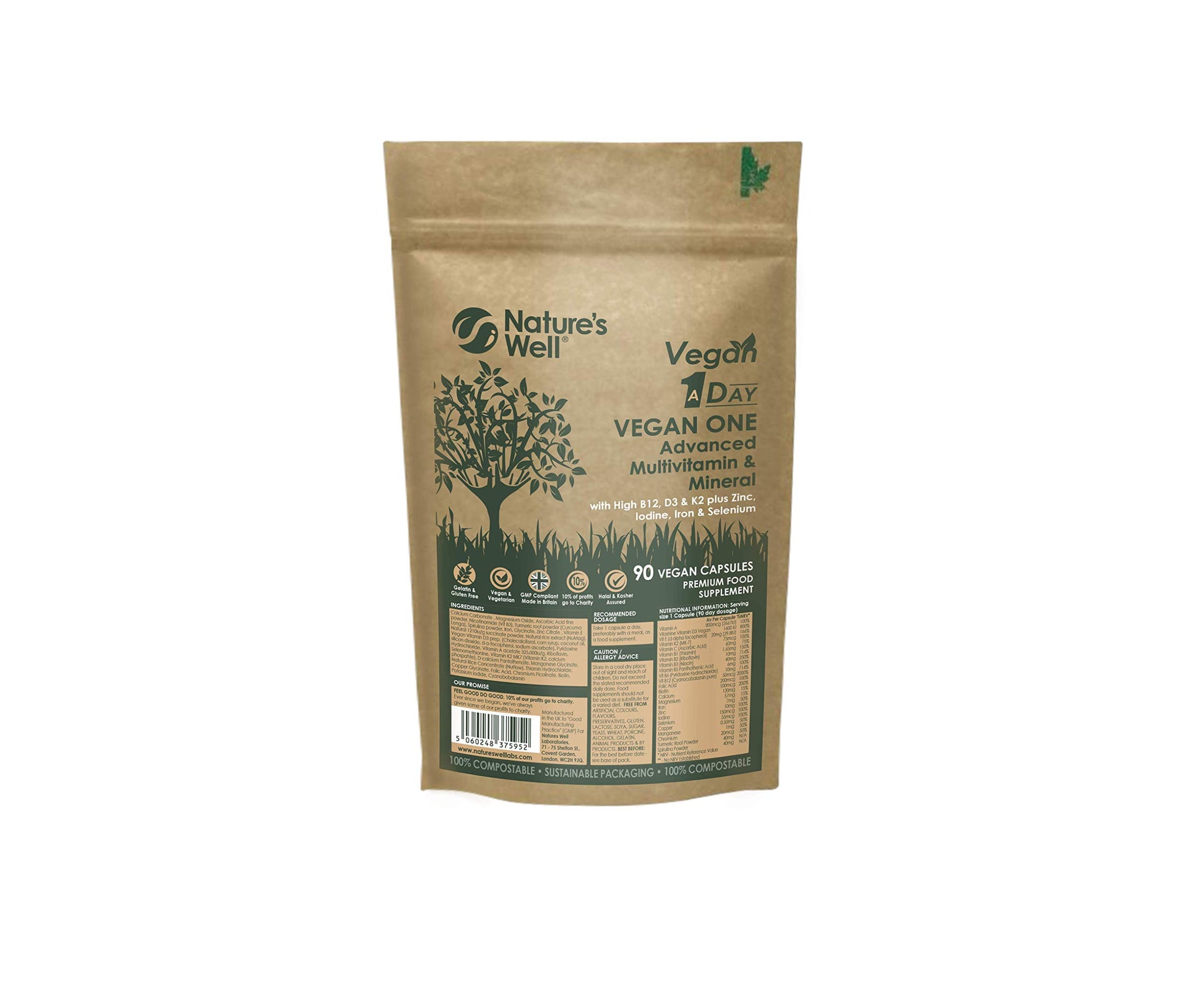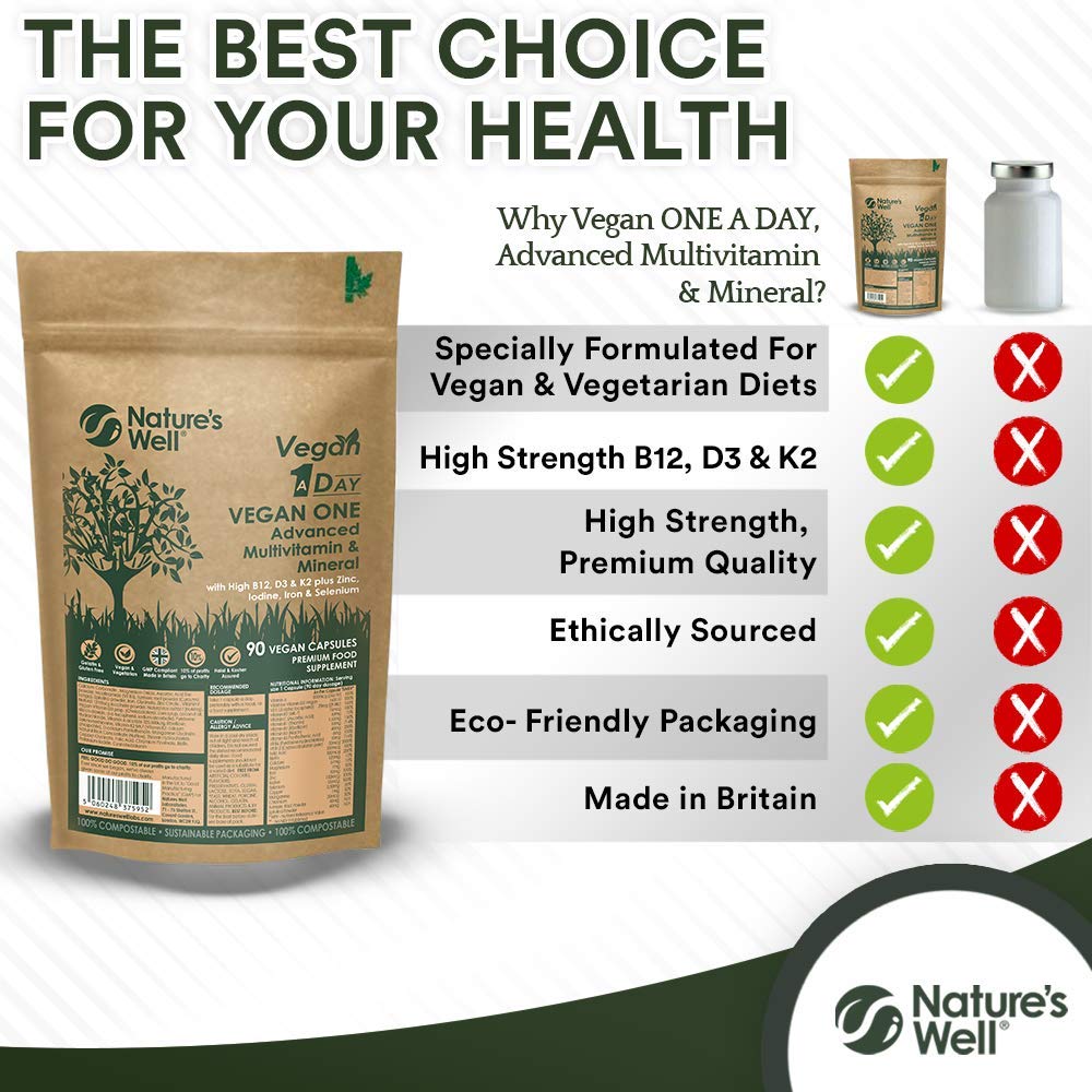 Nature's Well Vegan Multivitamins & Minerals with High Strength B12, D3 & K2, 90 Capsules – Halal & Kosher, Made in UK by Nature’s Well, Designed for Vegans & Vegetarians - Pouch