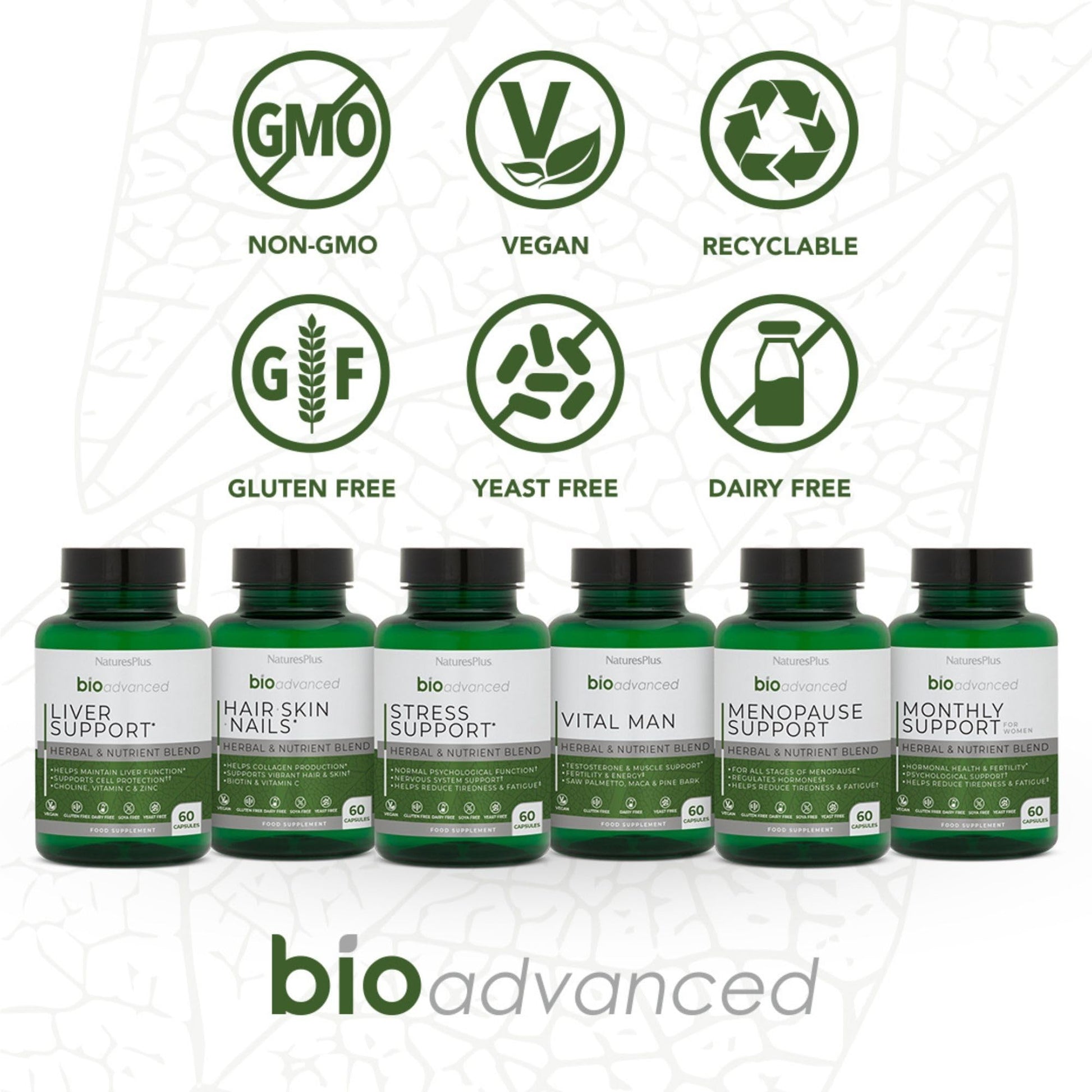NaturesPlus BioAdvanced Hair Skin and Nails - Vegan Collagen Support - High Strength Biotin, Hyaluronic Acid and Antioxidants - Gluten Free, Vegan - 60 Capsules