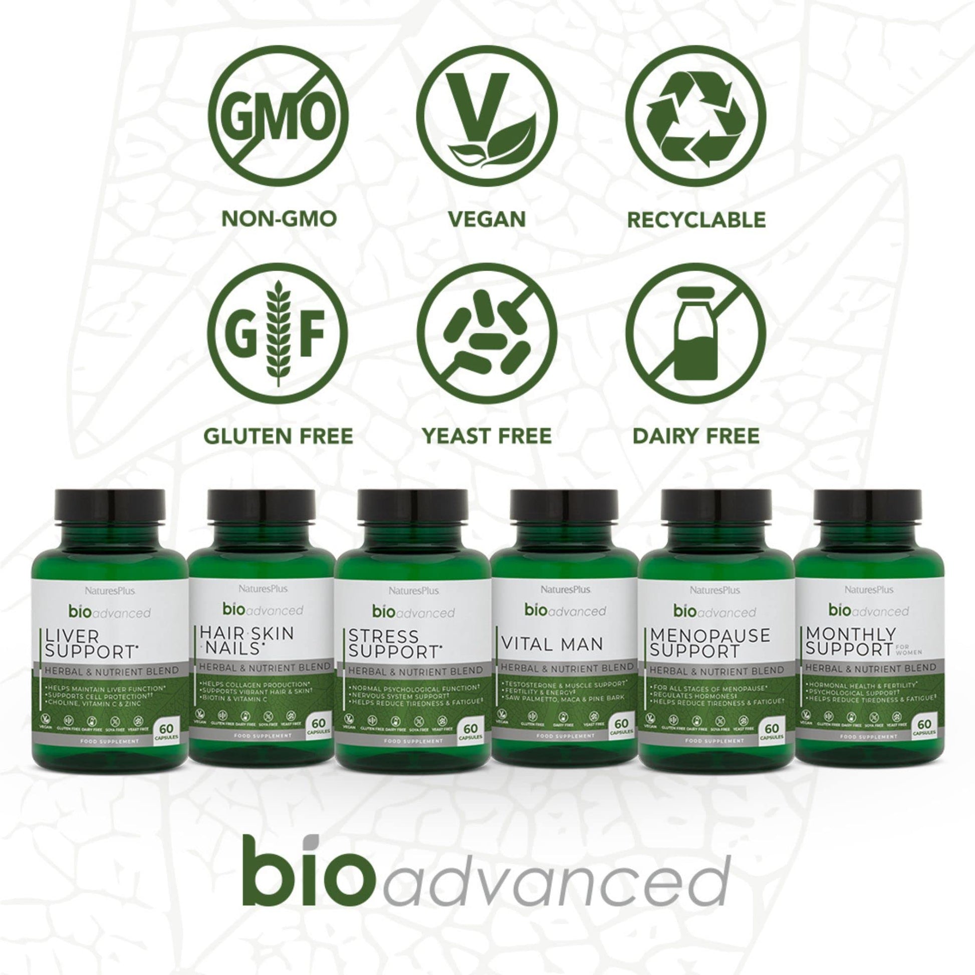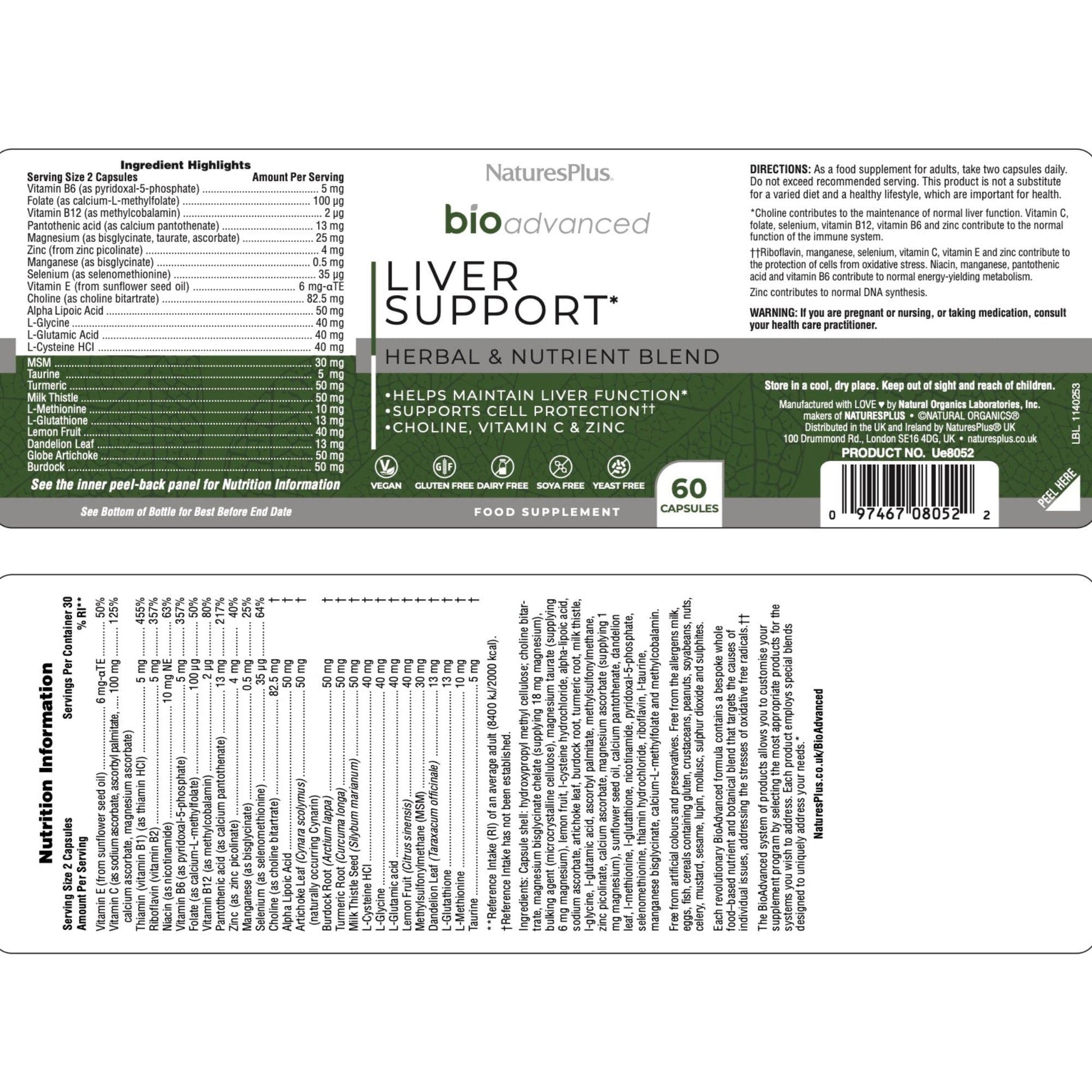 NaturesPlus BioAdvanced Liver Support - Liver Health Supplement with Turmeric, Artichoke, Milk Thistle, Dandelion, Choline and Methyl Bs - Gluten, Dairy and SOYA Free - Vegan - 60 Capsules