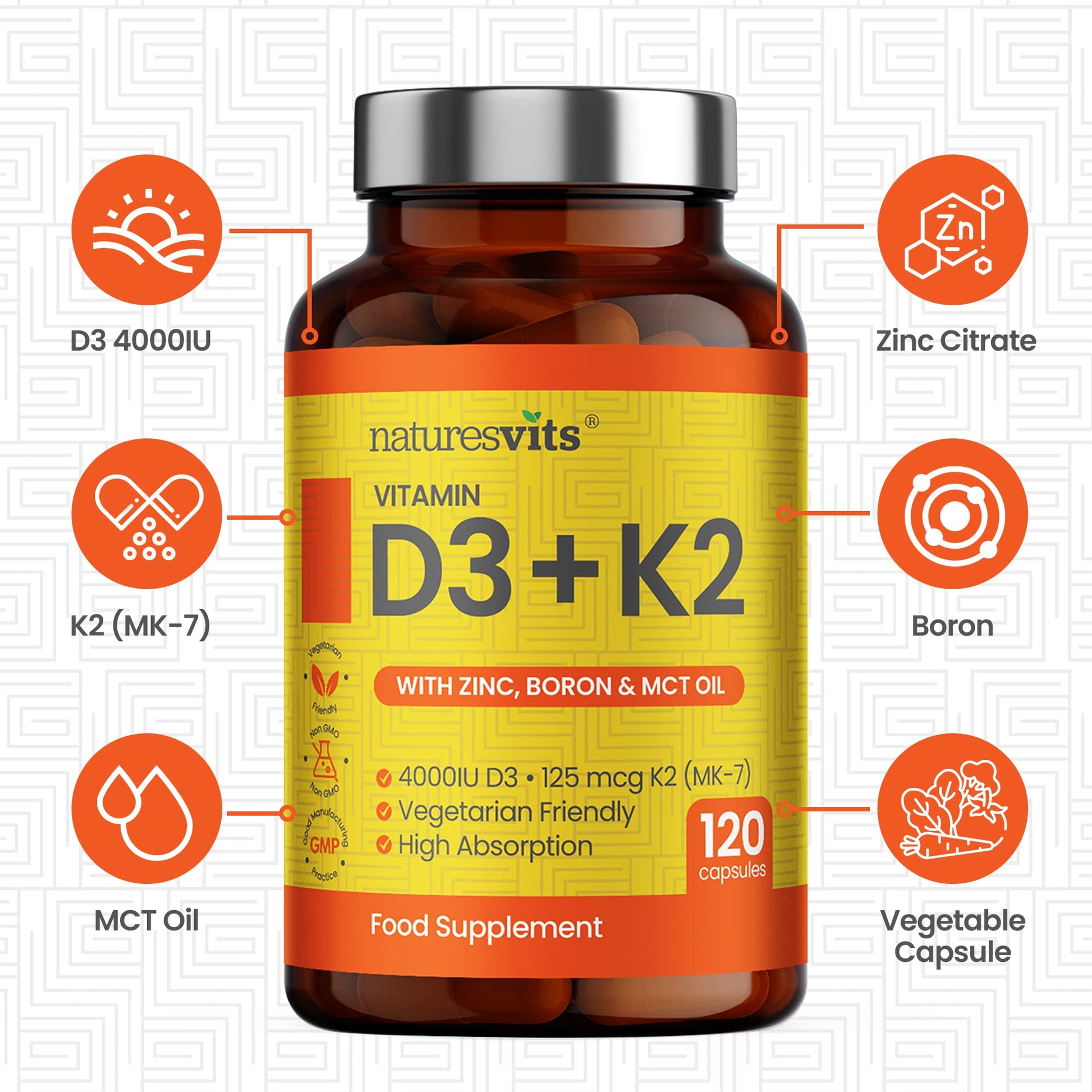 If your system isn’t carefully balanced, regular calcium supplements for bone health can’t be absorbed by your body and will just pass right through you. NaturesVits high dose vitamin D compound contains extra ingredients that help your body absorb calcium, allowing you for better uptake and promoting bone and teeth density. More than just vitamin D3 and K2 high strength doses, our bone and joint supplements contain MCT oil, boron and zinc which increase bioavailability.