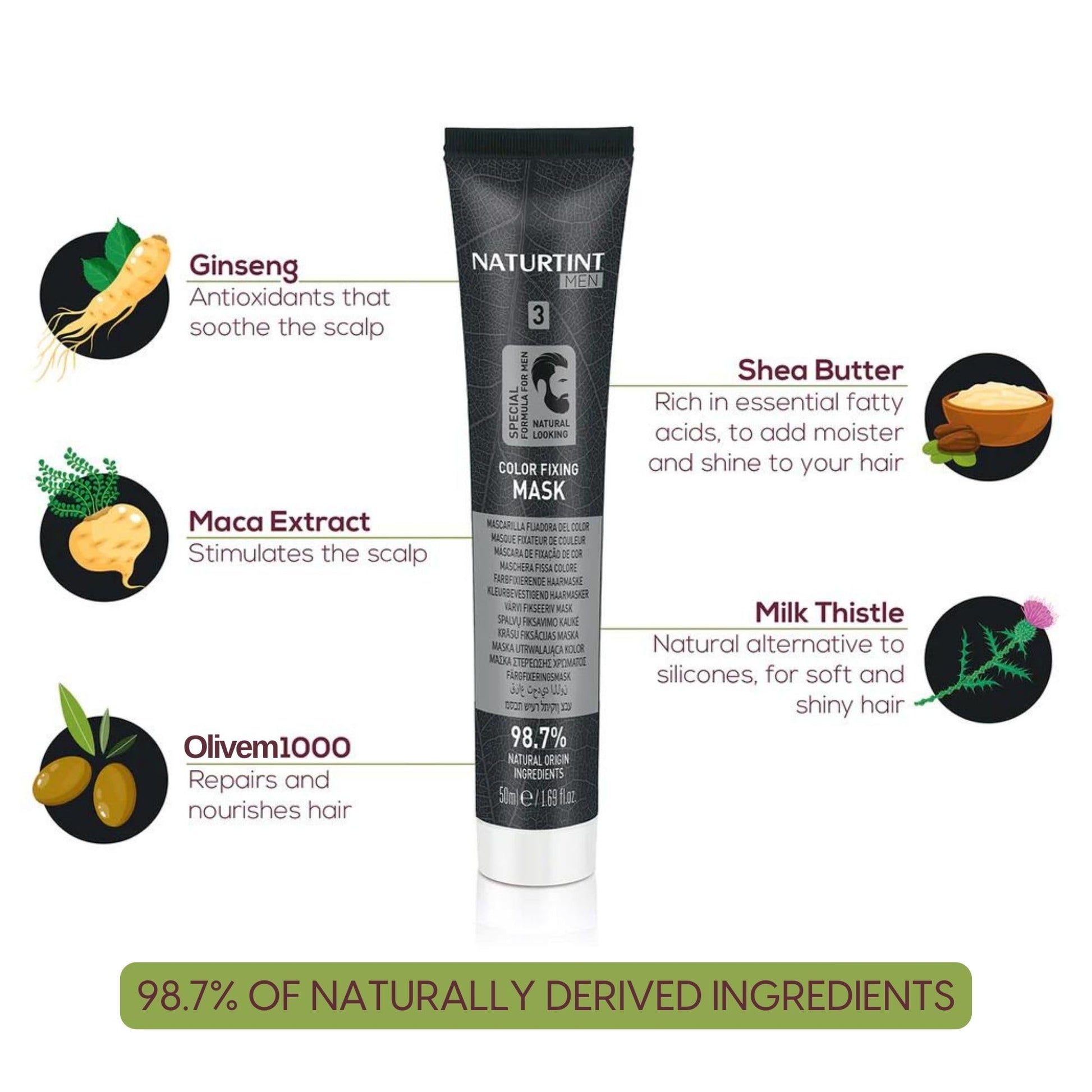 - Enriched with ingredients of natural origin to provide a natural-looking, uniform tone that rejuvenates your hair, beard and moustache. Each box also includes a Colour Fixing Hair Mask that completes the colouring process and locks in your new colour.