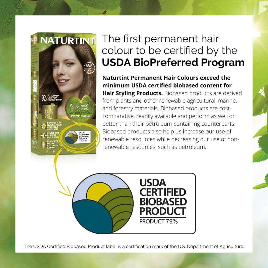 NATURTINT Naturtint Permanent Hair Colour, 6GA Deep Almond Brown, Plant Enriched, Ammonia Free, Long Lasting Grey Coverage and Radiant Colour, Nourishment and Protection