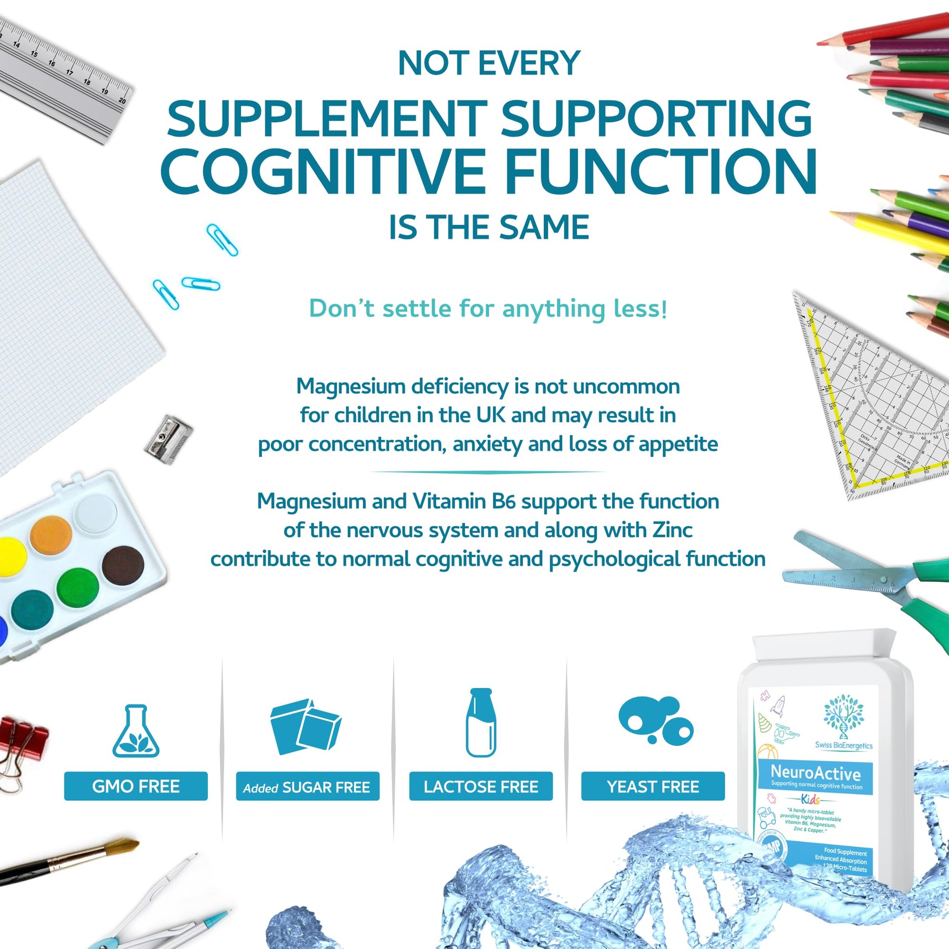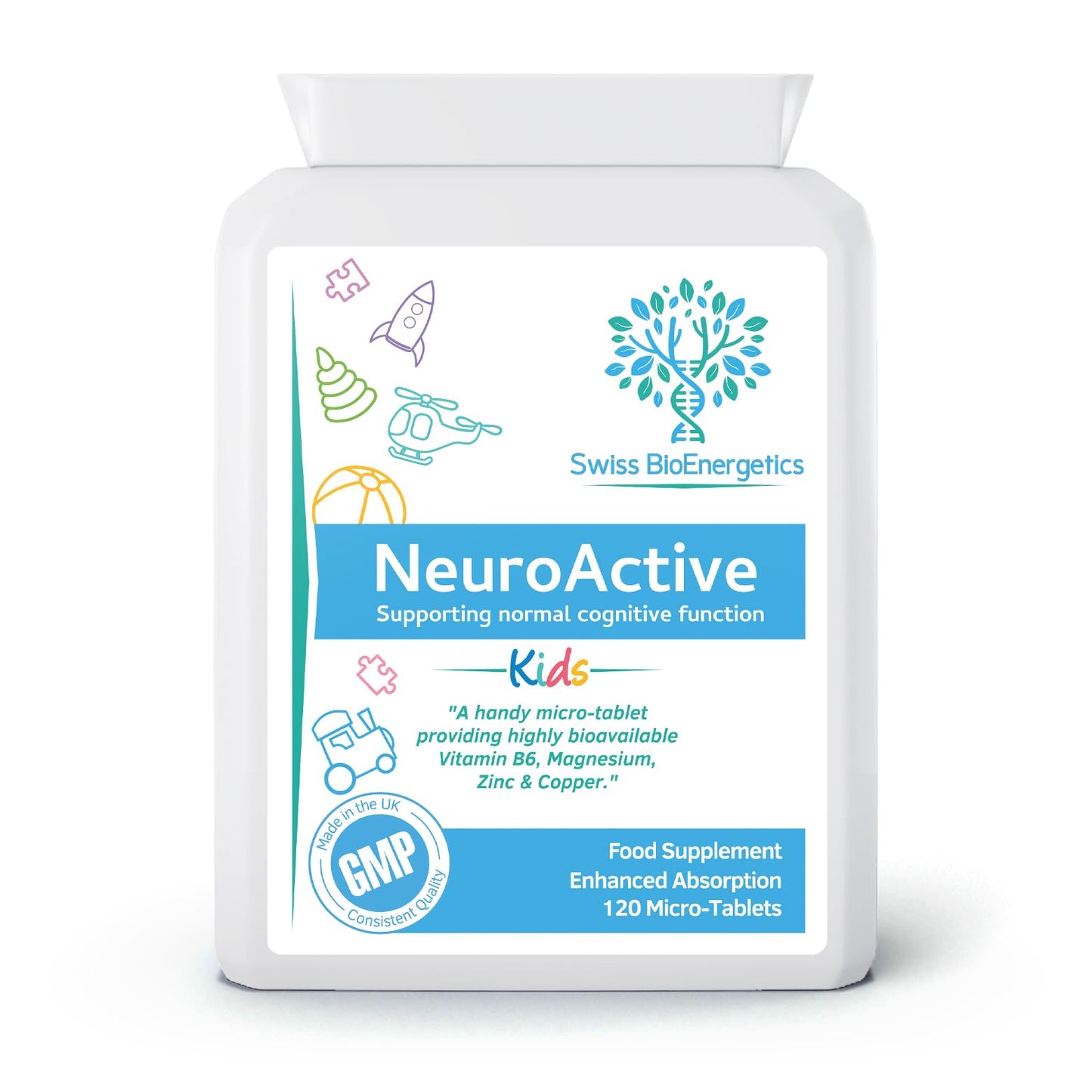 Swiss BioEnergetics NeuroActive 120 highly bioavailable micro-tablets - Magnesium Citrate , Zinc Picolinate, Copper Glycinate & Vitamin B6 balanced for Children and Adults - superior absorption - vegan friendly - UK Made:- Highly-absorbable zinc picolinate