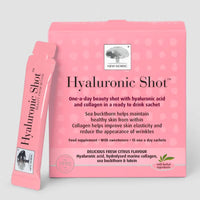 Hyaluronic Shot is a hyaluronic acid and collagen sachet, pre-mixed and easy to take with a natural fresh citrus flavour, formulated in the perfect dose and designed to fit effortlessly into your everyday beauty routine. Hyaluronic Shot contains hyaluronic acid, premium hydrolysed freshwater marine collagen combined with lutein, and sea buckthorn extract. For exceptional results combine with New Nordic Hyaluron Active cosmetic series in a complete Beauty In and Out routine. A quality that works in harmony with your body.More Info