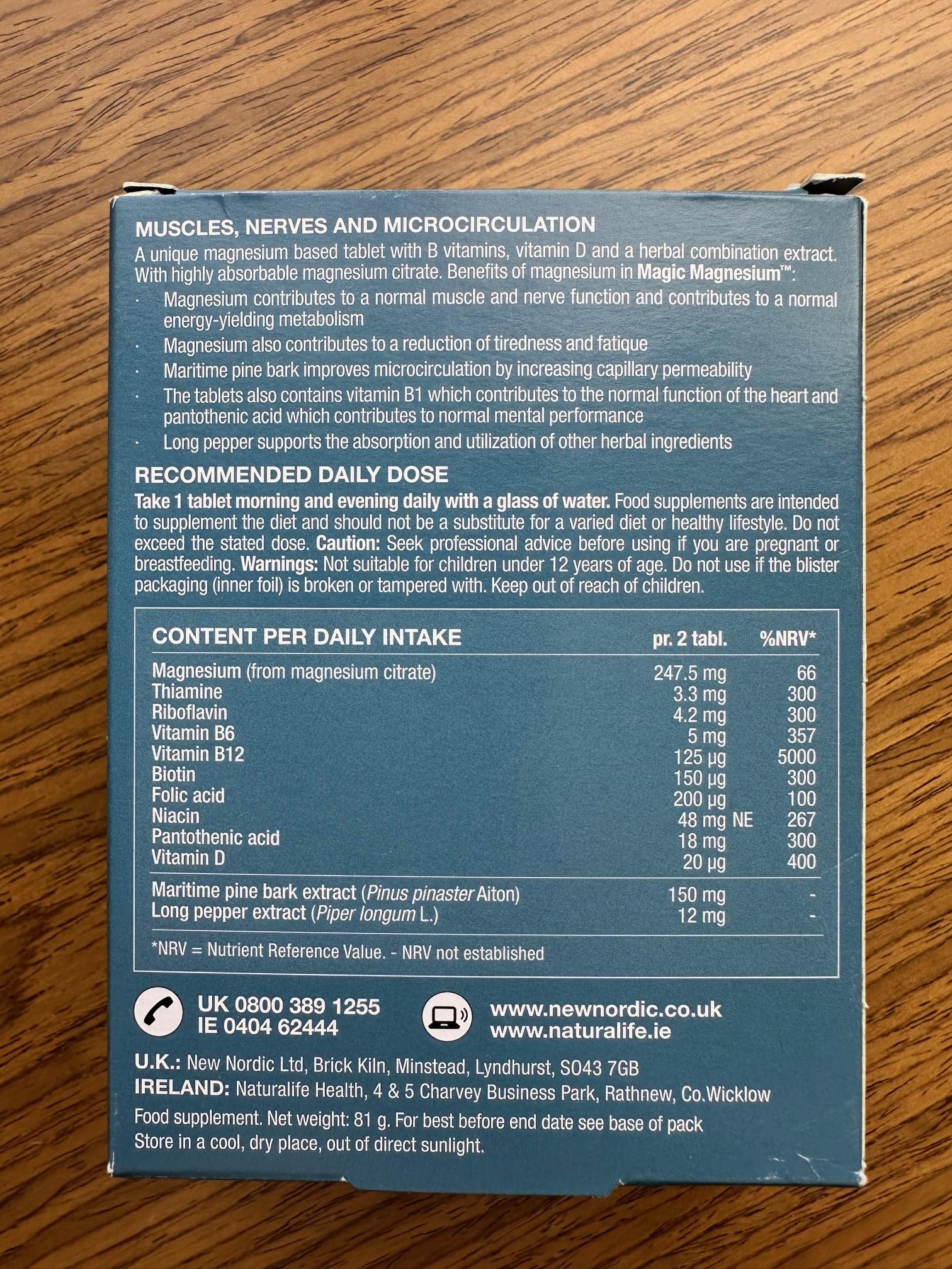 A unique magnesium-based tablet with B vitamins, vitamin D, and a herbal combination extract. With highly absorbable magnesium citrate. New Nordic’s Magic Magnesium Citrate contributes to normal muscle and nerve function and contributes to a normal energy-yielding metabolism. Magnesium also contributes to a reduction in tiredness and fatigue. Maritime pine bark improves microcirculation by increasing capillary permeability. The tablets also contain vitamin B1 which contributes to the normal function of the heart and pantothenic acid which contributes to normal mental performance. Long pepper supports the absorption and utilisation of other herbal ingredients.More Info