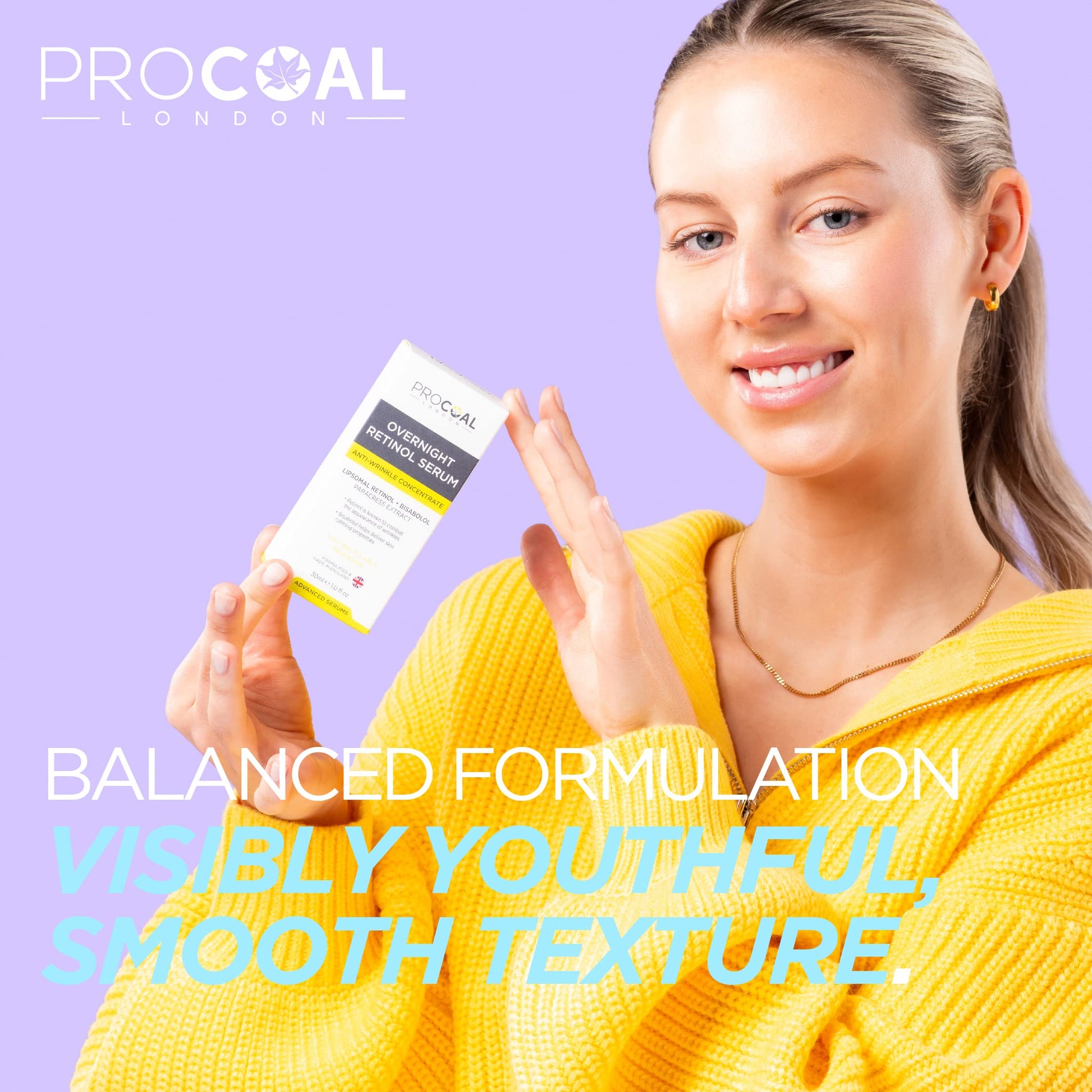 NEW Overnight Retinol Serum High Strength for Face 30ml by Procoal - 3% Retinol Complex Night Concentrate with Bisabolol & Paracress Extract, Vegan, Cruelty-Free, Made in UK