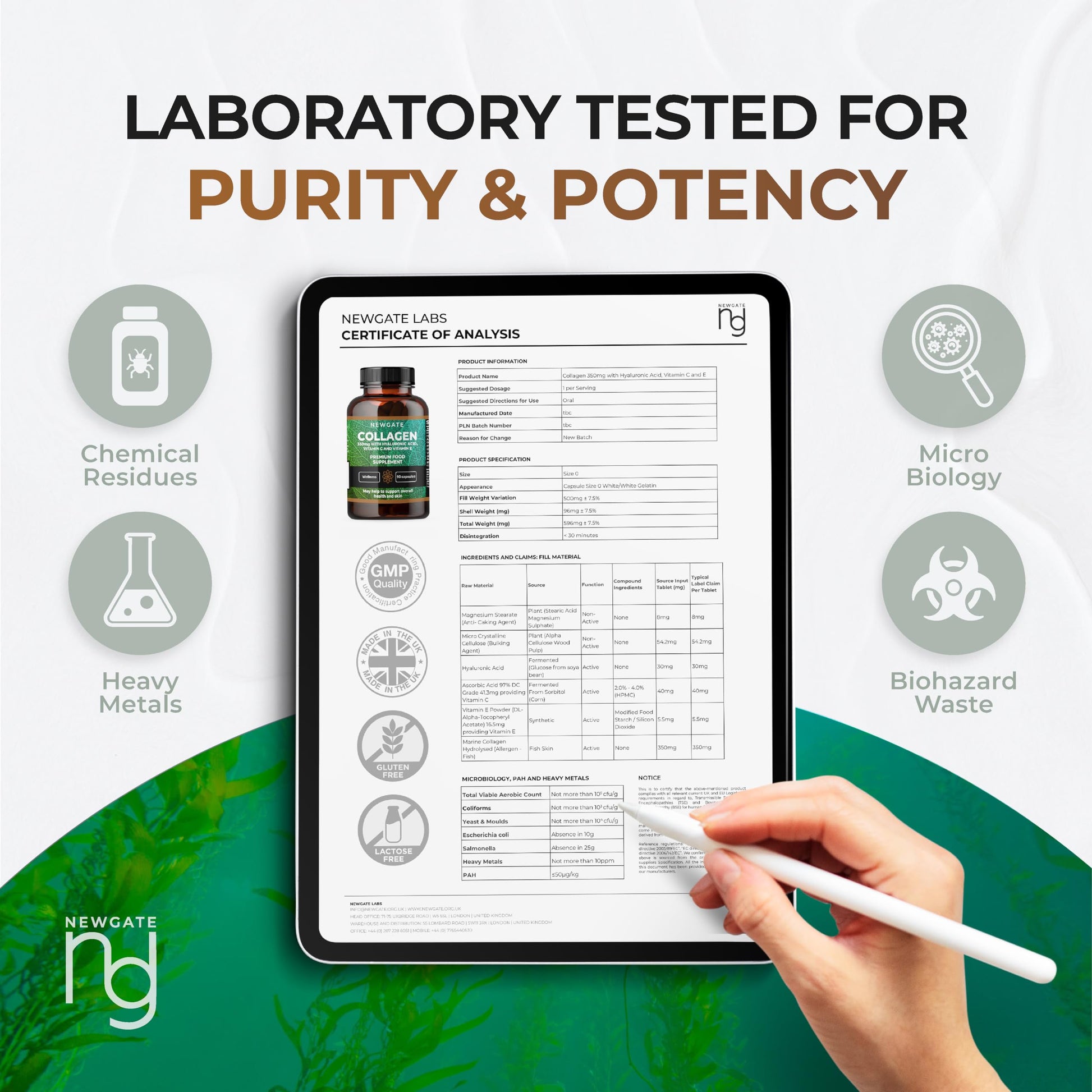 Newgate Labs Marine Collagen 350mg with Hyaluronic Acid, Vitamin C & Vitamin E - 120 High Strength Capsules - GMO Free - Halal - Made in The UK