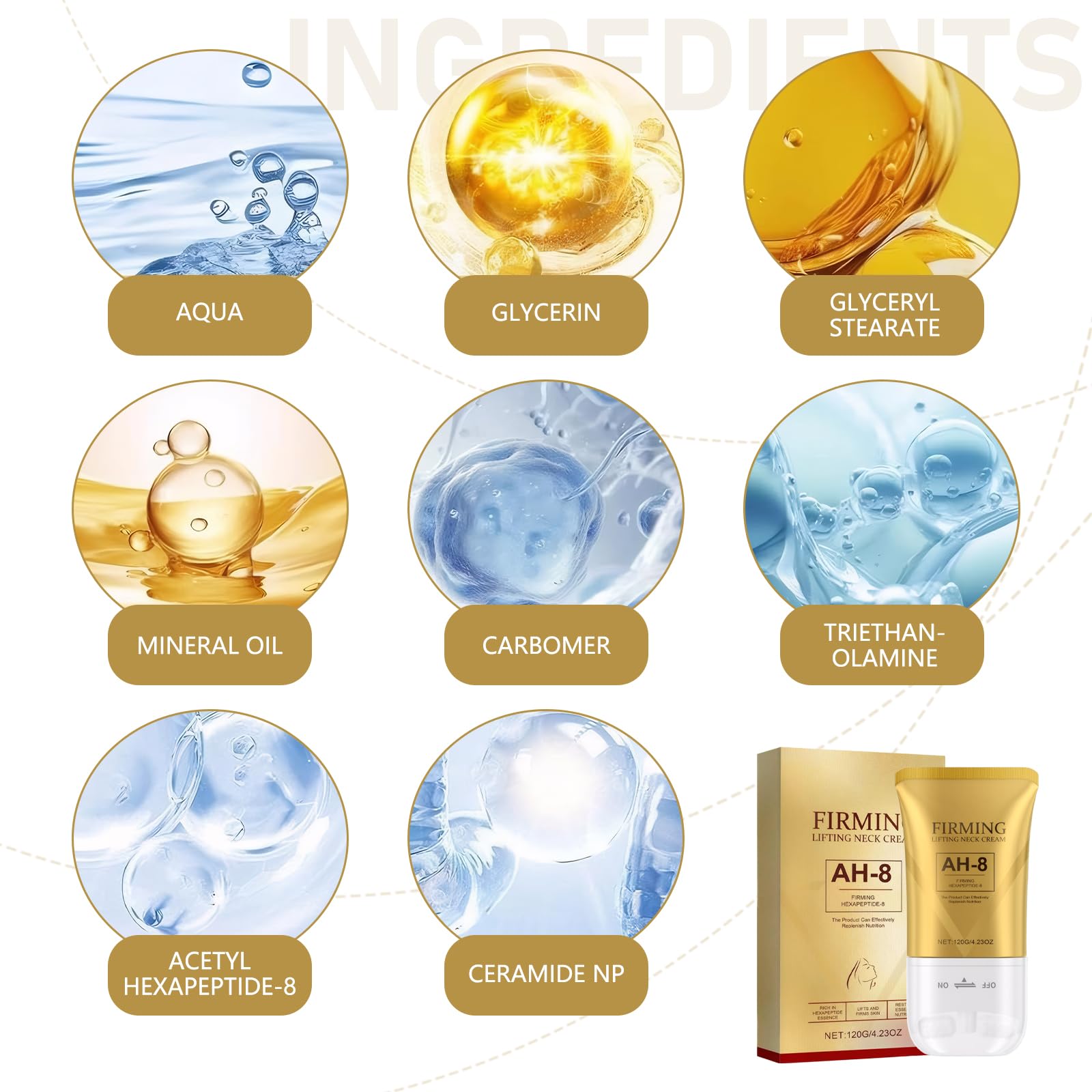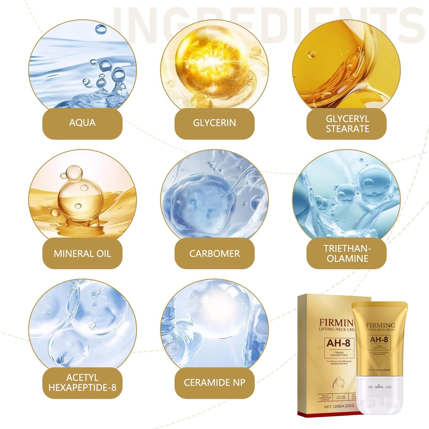 At the heart of this neck firming cream lies AH-8 technology, a groundbreaking peptide complex that works deep within the skin layers to improve collagen production. This advanced formula is specifically tailored to address sagging and loose skin on the neck area, visibly firming and lifting it for a more sculpted appearance. Whether you're dealing with "turkey neck" or simply aiming to maintain a toned look, this neck firming cream delivers professional-grade results that rejuvenate and revitalize your skin.