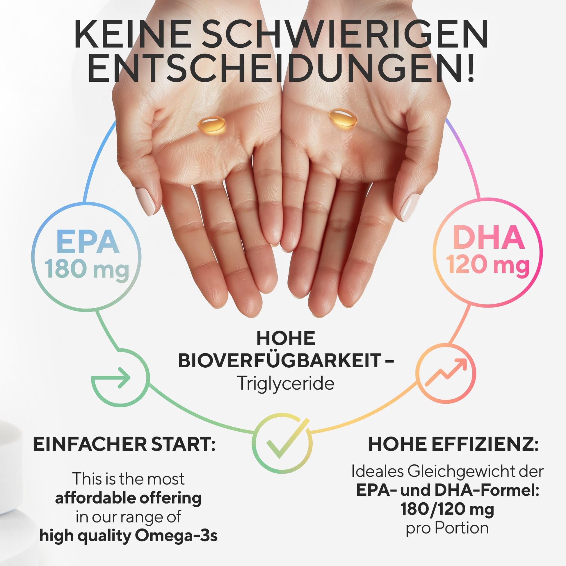 A positive effect is achieved with a daily intake of 3 g of EPA and DHA. An additional daily intake of 5 g of EPA and DHA together must not be exceeded.
