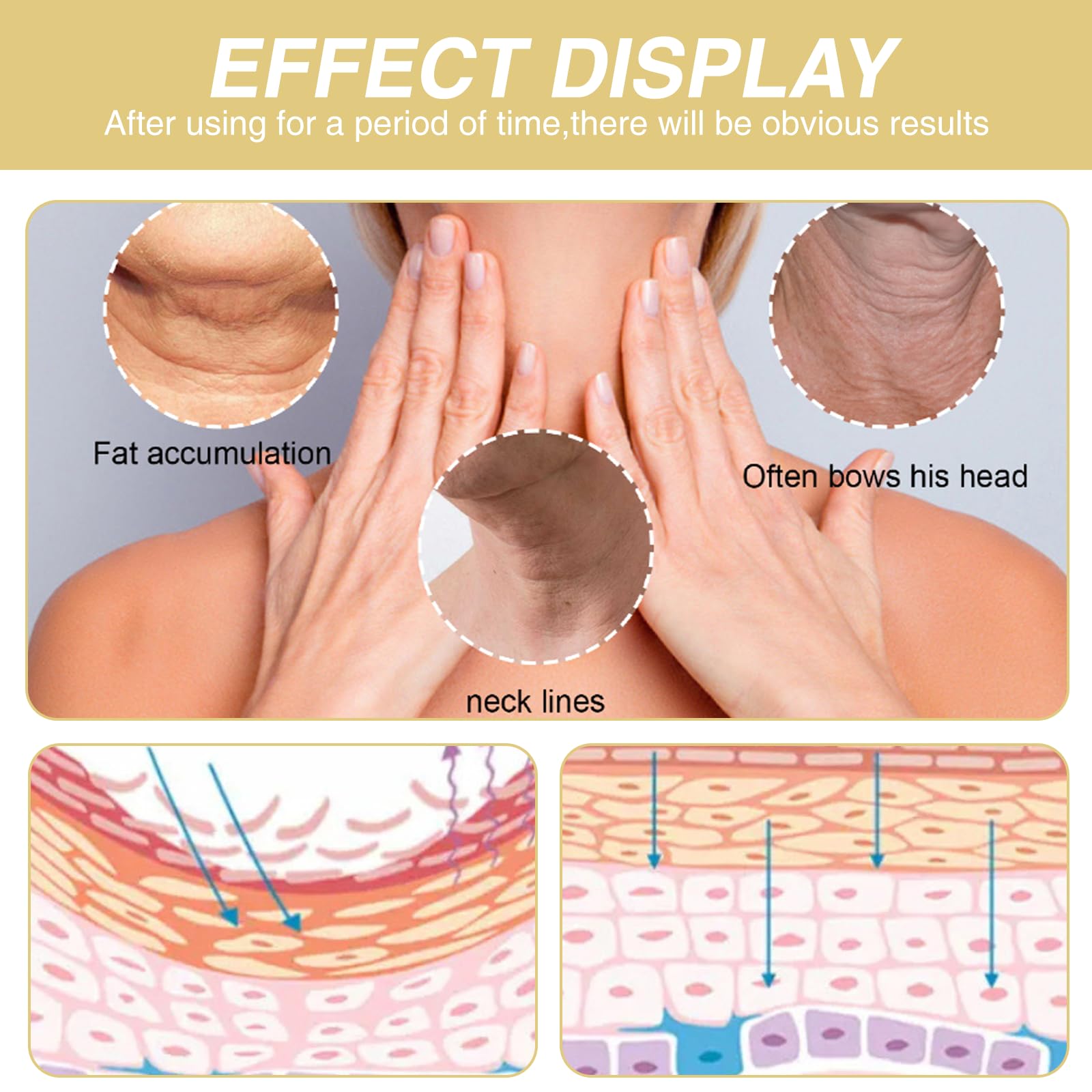 Ninnyi Neck Firming Cream, AH 8 Firming Neck Cream with Double Roller Massage, Reduce Wrinkles Fine Lines and Double Chin, Firm and Lift Sagging Skin