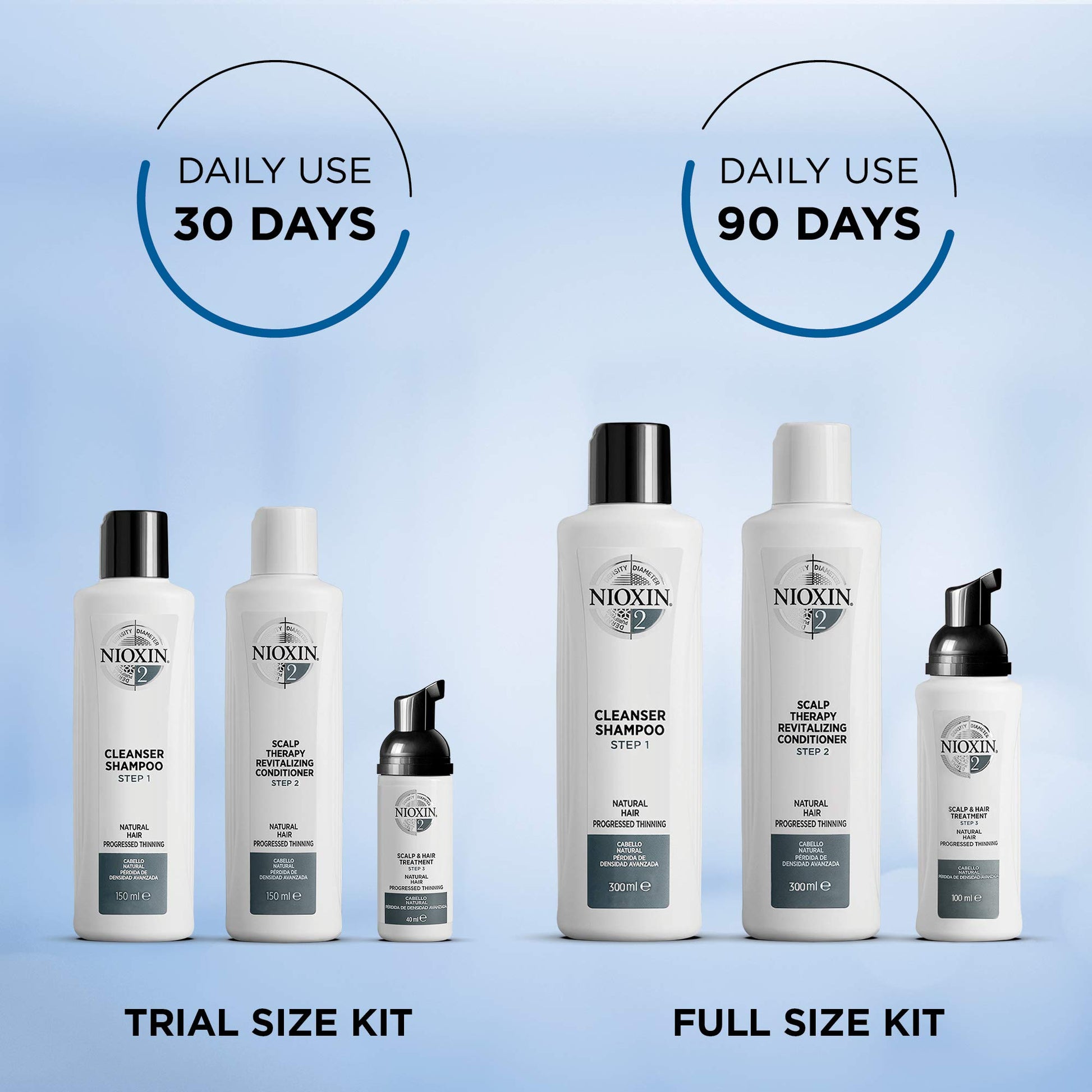 Nioxin 3-Part System, System 2 Natural Hair with Progressed Thinning, Hair Thickening Treatment, Scalp Therapy, Trial Kit