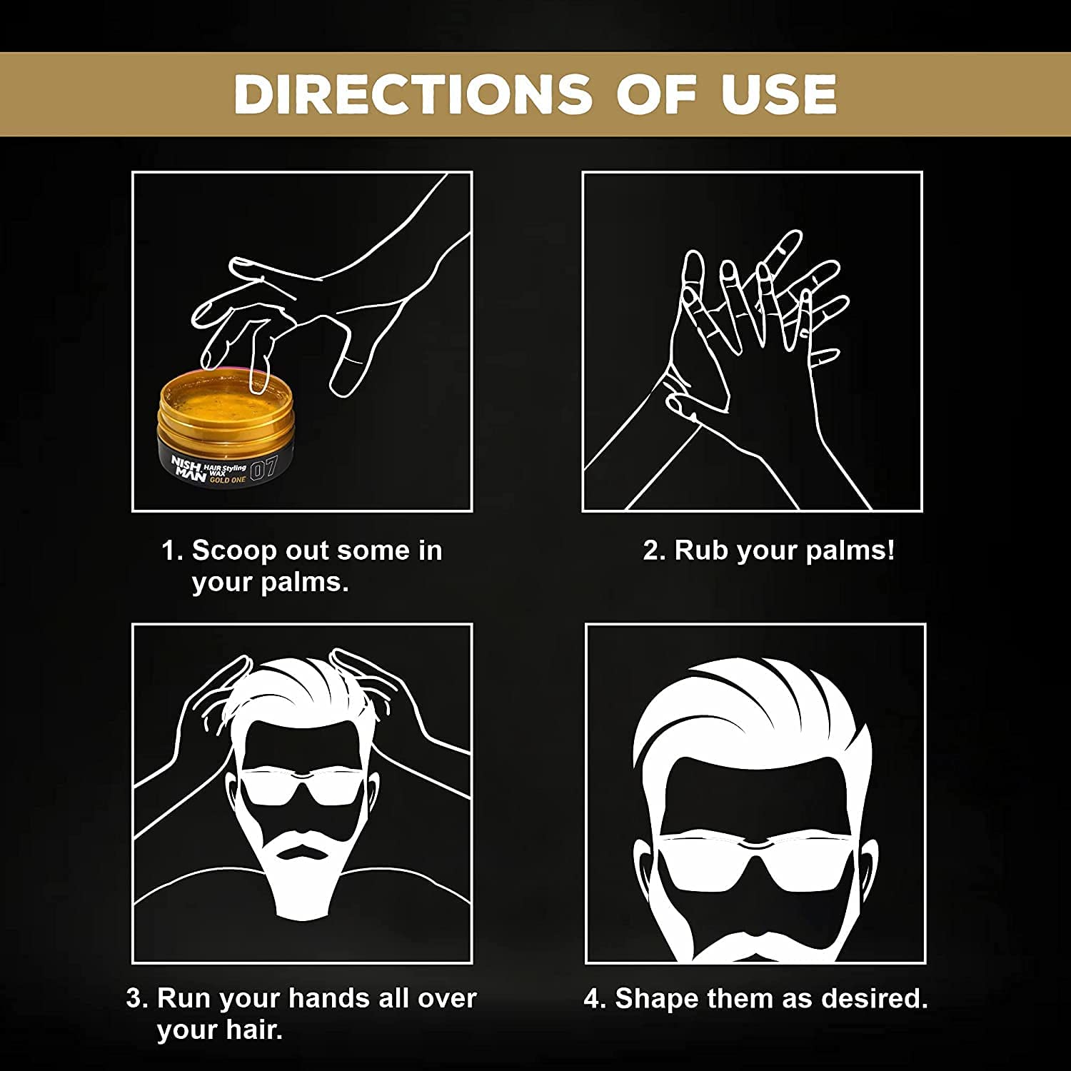 Nish Man Hair Styling Gel, Hair Wax for Men, 07 Gold One, 150 ml | Shine Look | Edge Control | Ultra High Strong Hold | Hair Clay Aqua Wax | Wax Stick Hair | Men's Hair Gel (07 Gold One)