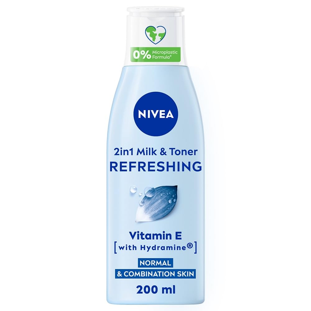 NIVEA 2-in-1 Refreshing Milk & Toner (200ml), Face Cleanser with Vitamin E and Hydramine, Deeply Cleanses, Tones, and Intensively Moisturises Skin, Make-Up Remover