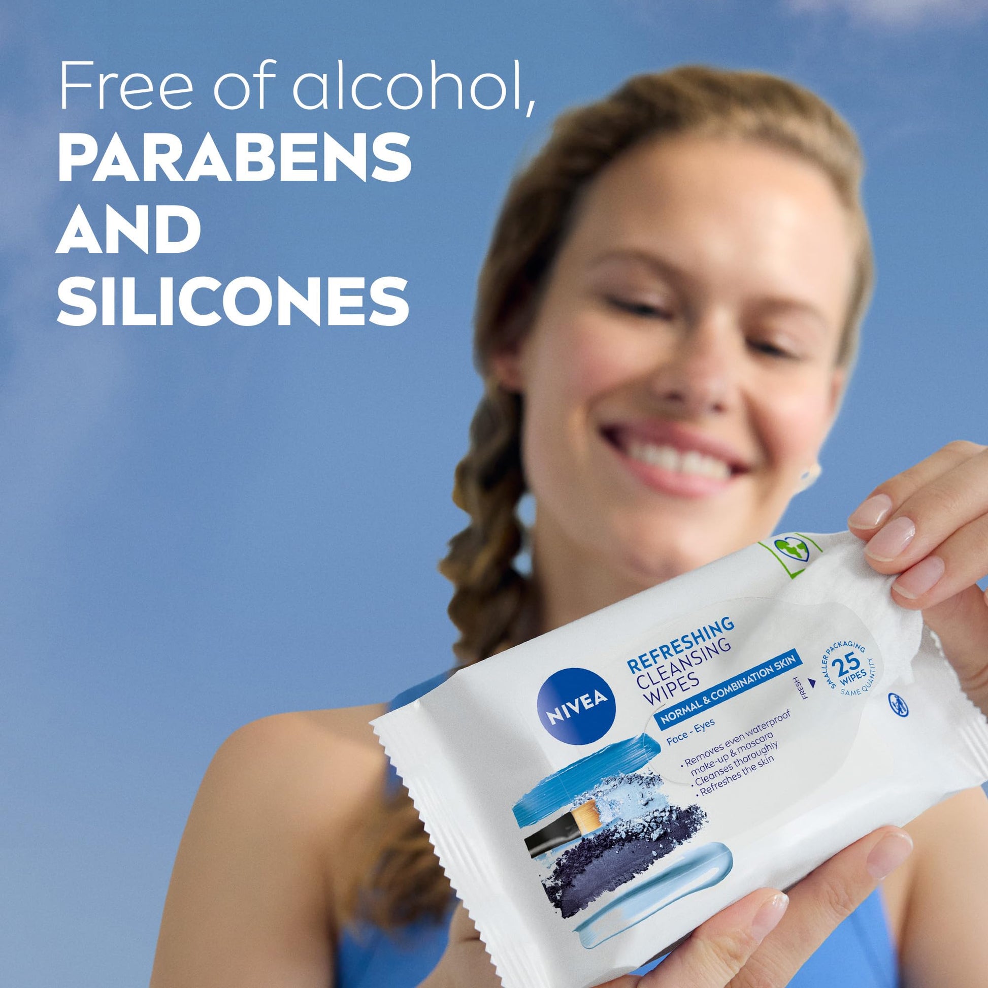 NIVEA 3 in 1 Refreshing Cleansing Wipes Pack of 6 (6 x 25 Wipes), Refreshing Make-Up Wipes with Vitamin E, Cleansing Face Wipes, Make Up Remover