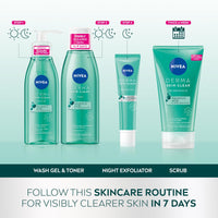 - Removes blemishes: NIVEA Derma Skin Clear Scrub reduces the appearance of whiteheads, blackheads, and other skin impurities to leave effortlessly clear skin