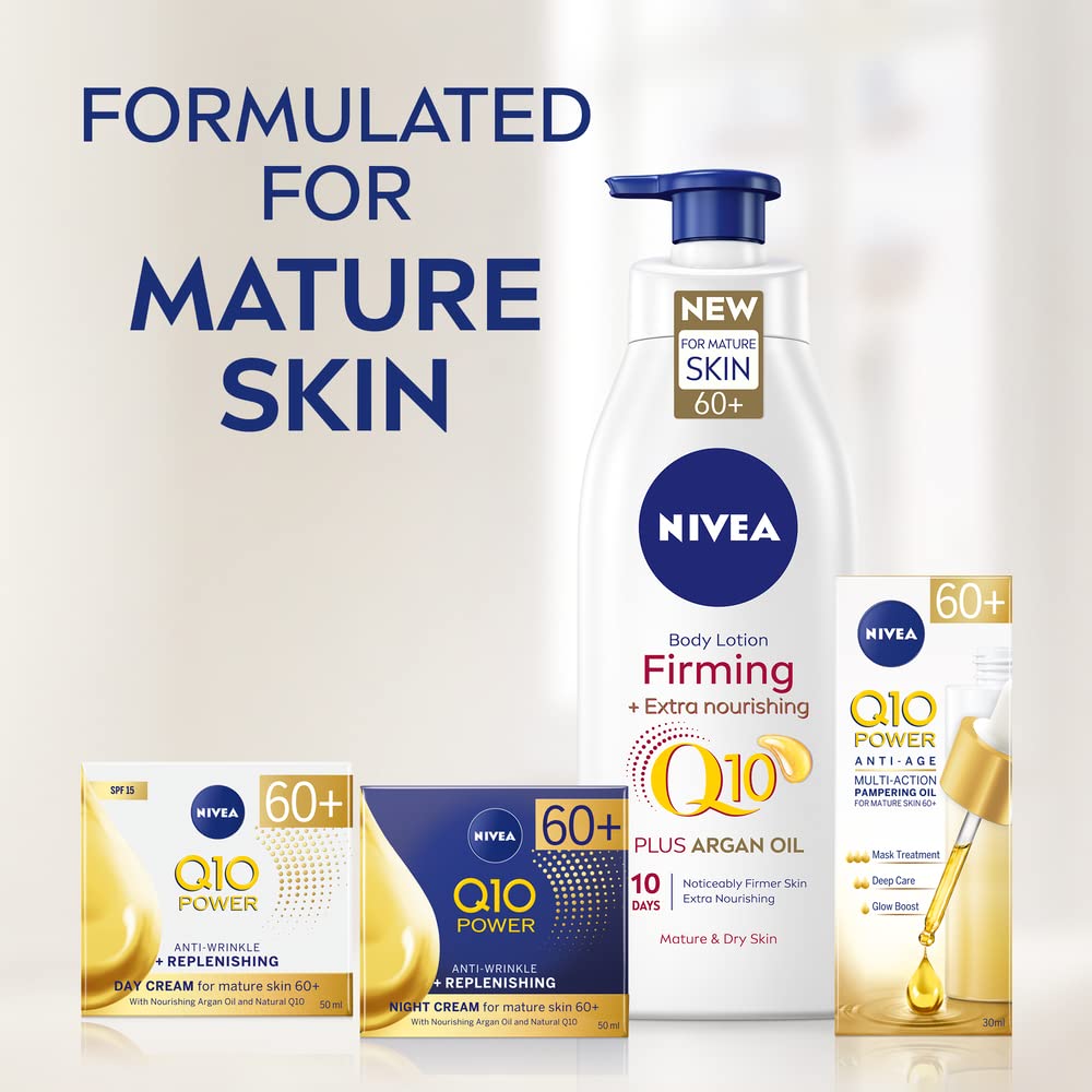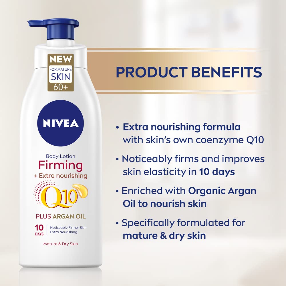 - Q10: The skin firming body cream is infused with the NIVEA's powerful Q10 which is carefully blended with Argan Oil to firm and nourish the skin