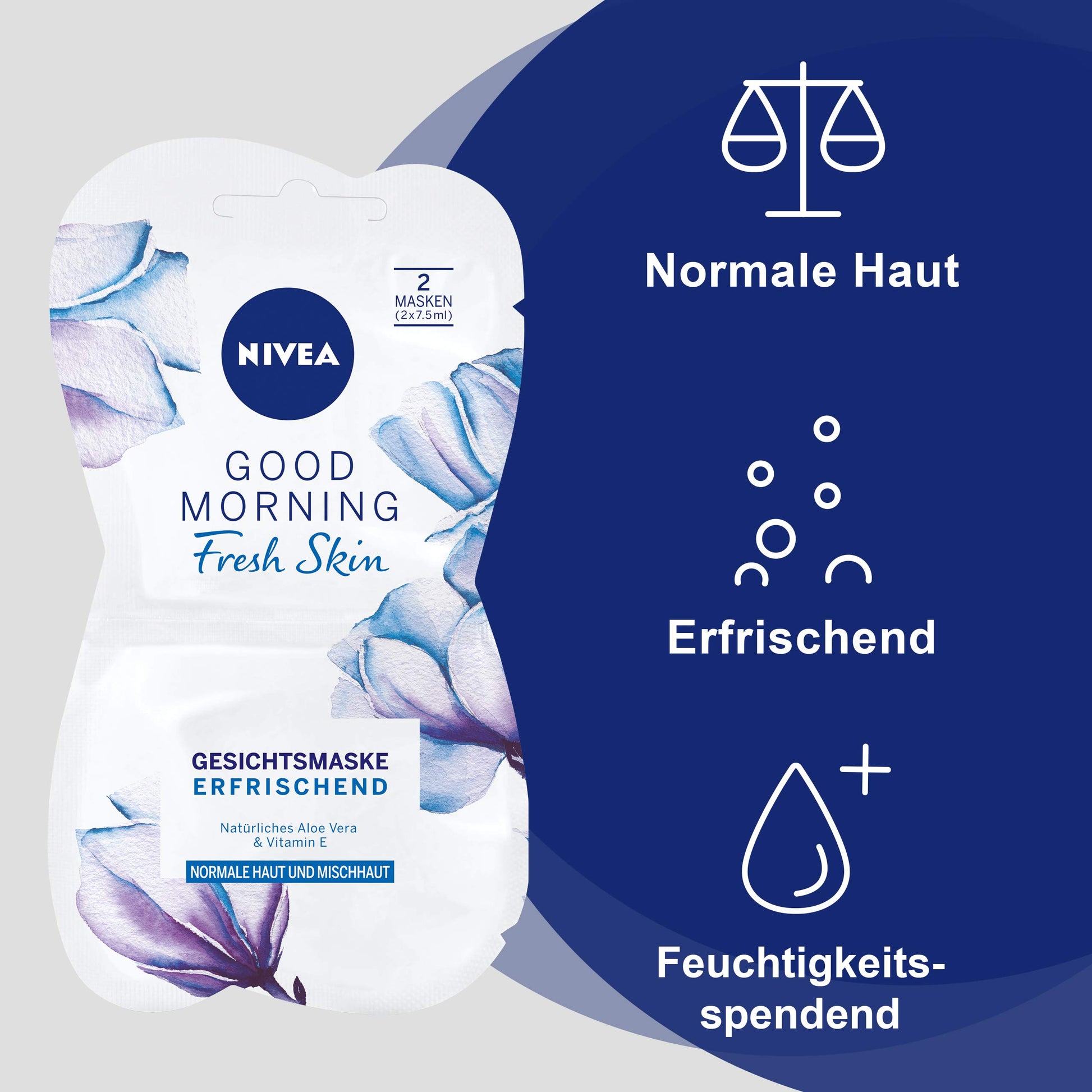 - Practical package: Nivea Good Morning Fresh Skin face mask with natural Aloe Vera and vitamin E in 1 pack, 1 x 15 ml, item number 84723.