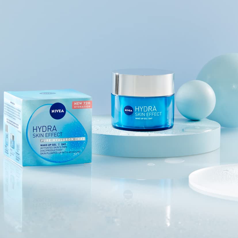 NIVEA Hydra Skin Effect Wake-Up Day Gel (50ml), Lightweight Day Face Gel Charged with Hyaluronic Acid, Gel-Based Face Moisturiser Provides 72H Hydration