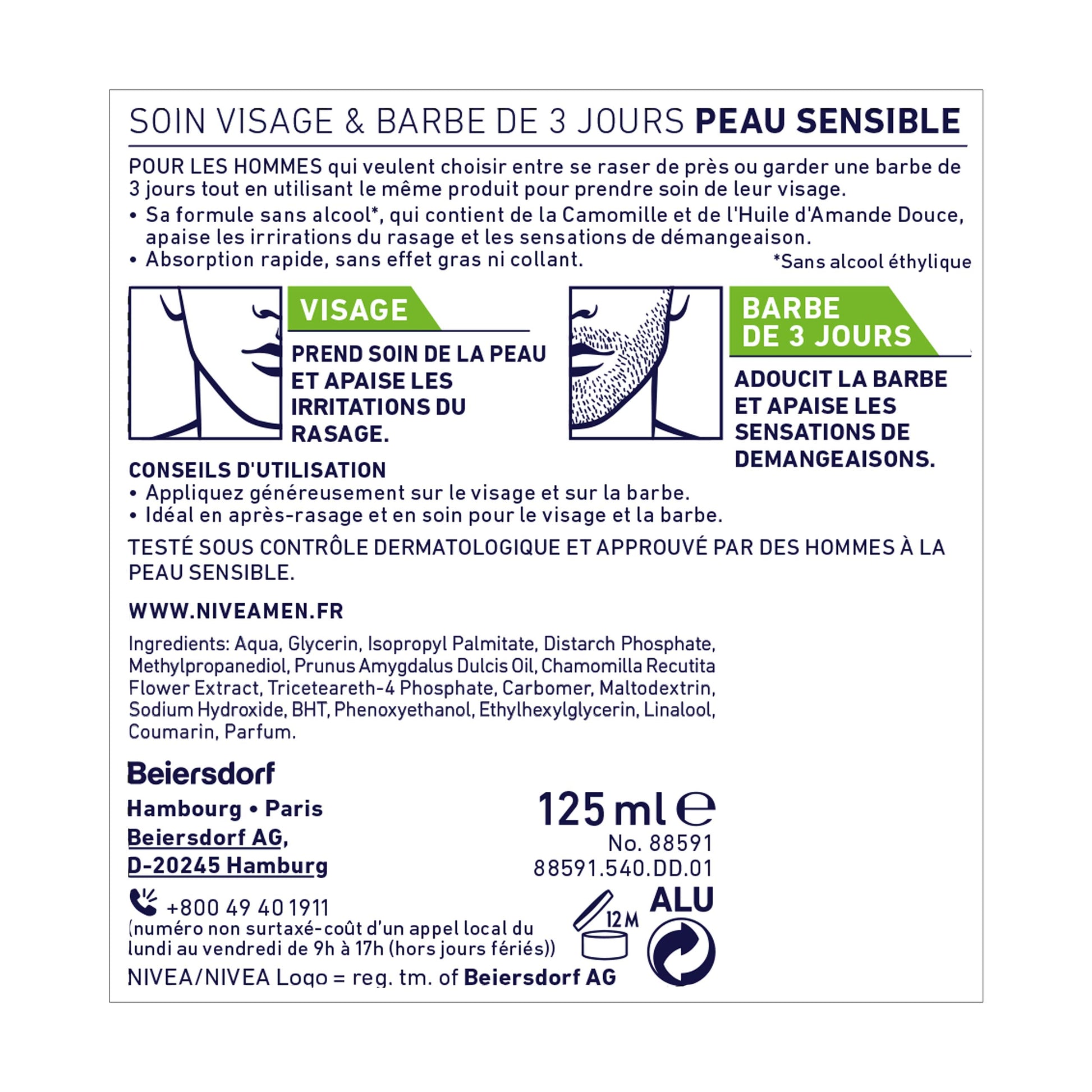 NIVEA MEN 3 Day Face & Beard Care (3 x 125 ml), Anti-Itch Soothing Care for Sensitive Skin, Softening Treatment 0% Alcohol for 3 Day Beards