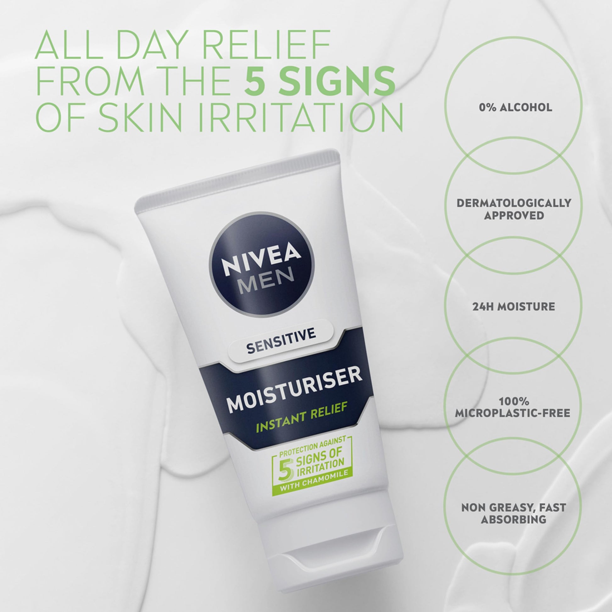 NIVEA MEN Sensitive Face Moisturiser with Zero Percent Alcohol, Sensitive Skin Moisturiser, Men's Skin Care Essentials, (75ml)