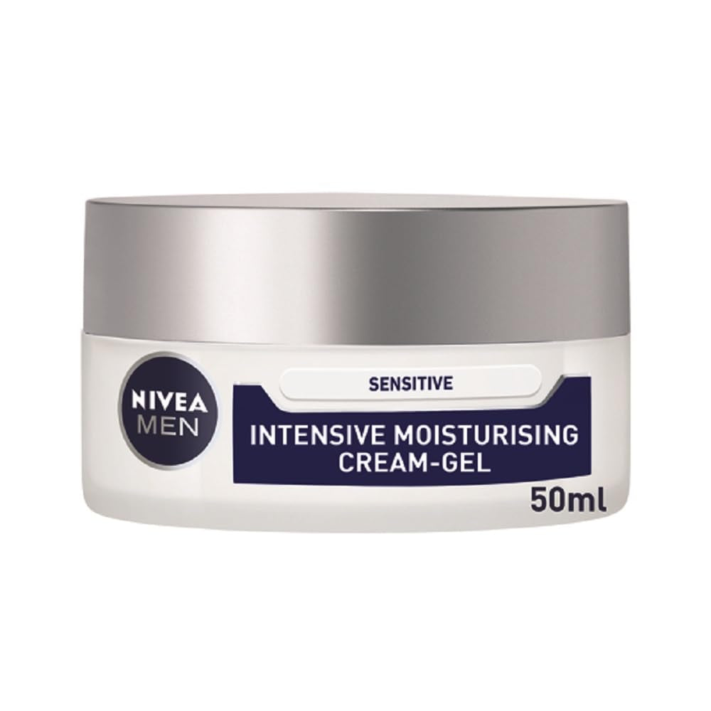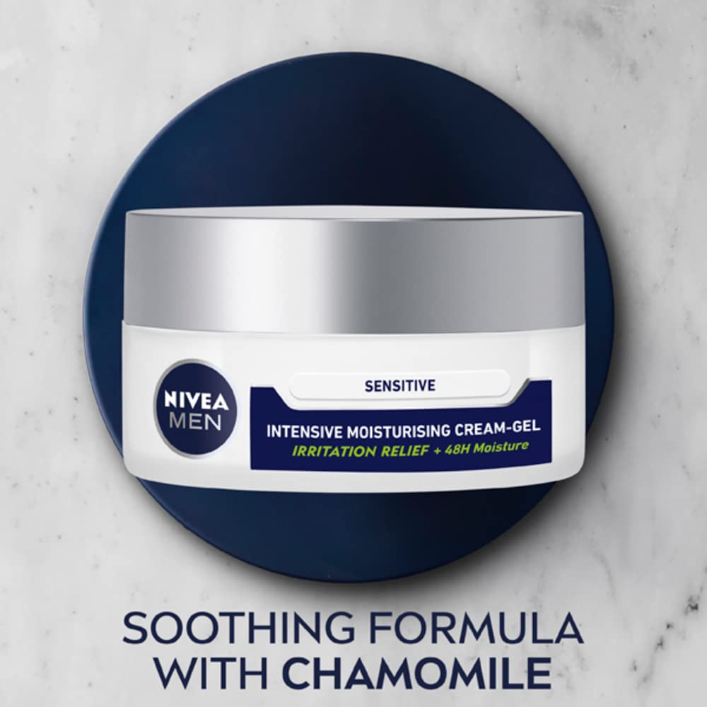 NIVEA MEN Sensitive Intensive Moisturising Cream (50ml), Face Care Moisturiser with Chamomile & Vitamin E for All-Day Relief from Skin Irritation & 48H Moisture, Ideal for After Shaving