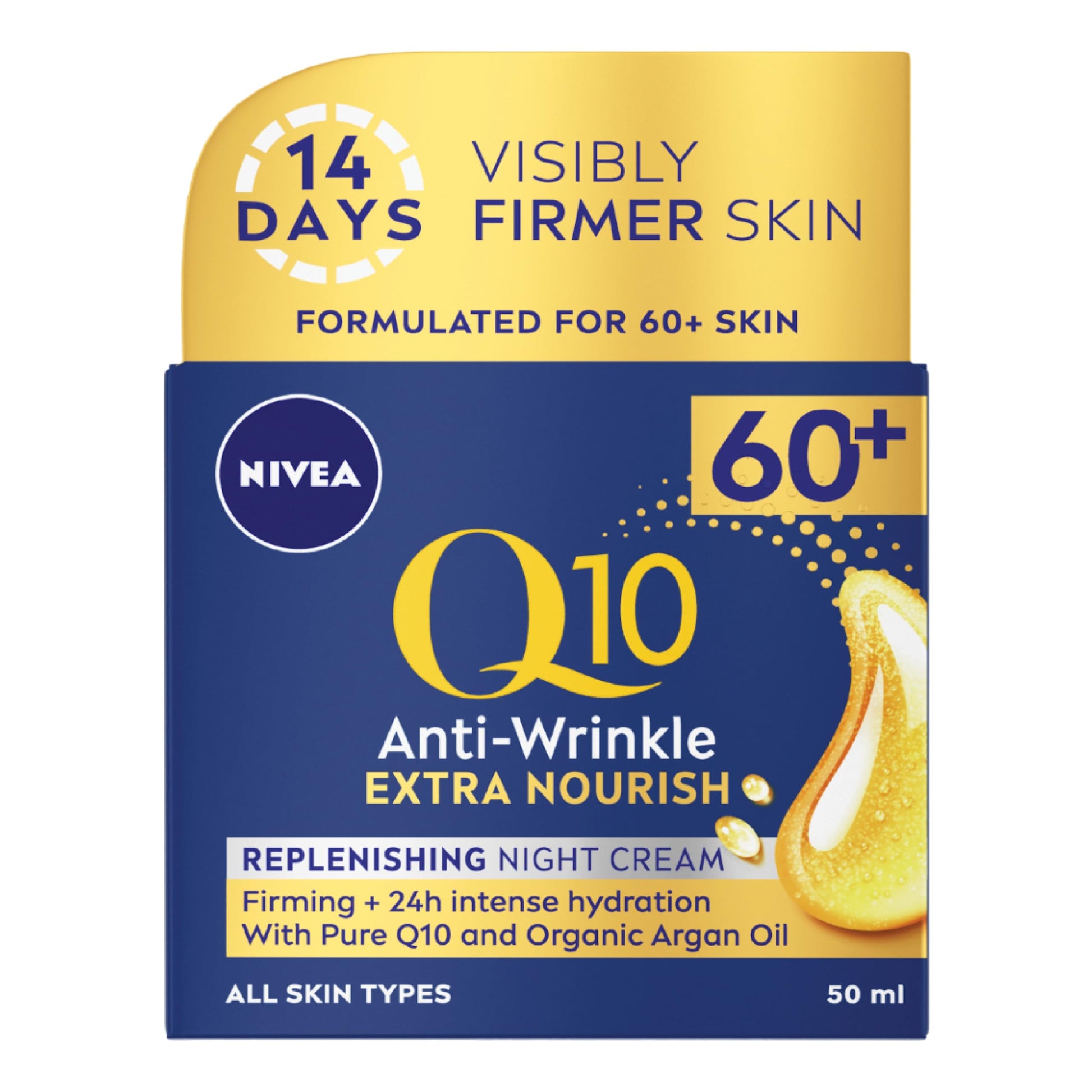 NIVEA Q10 Power 60 + Skin Anti-Wrinkle + Replenishing Night Cream (50 ml), Powerful Anti Ageing Cream, Night-Time Moisturiser for Women with Coenzyme Q10, Night Face Cream