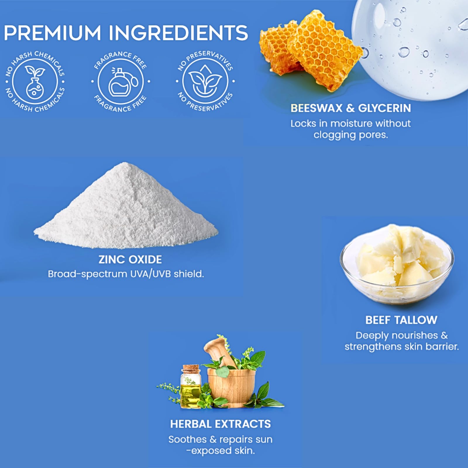 1PC Non Nano Zinc Oxide 100% Organic Grass-Fed Beef Tallow Sunscreen SPF 50