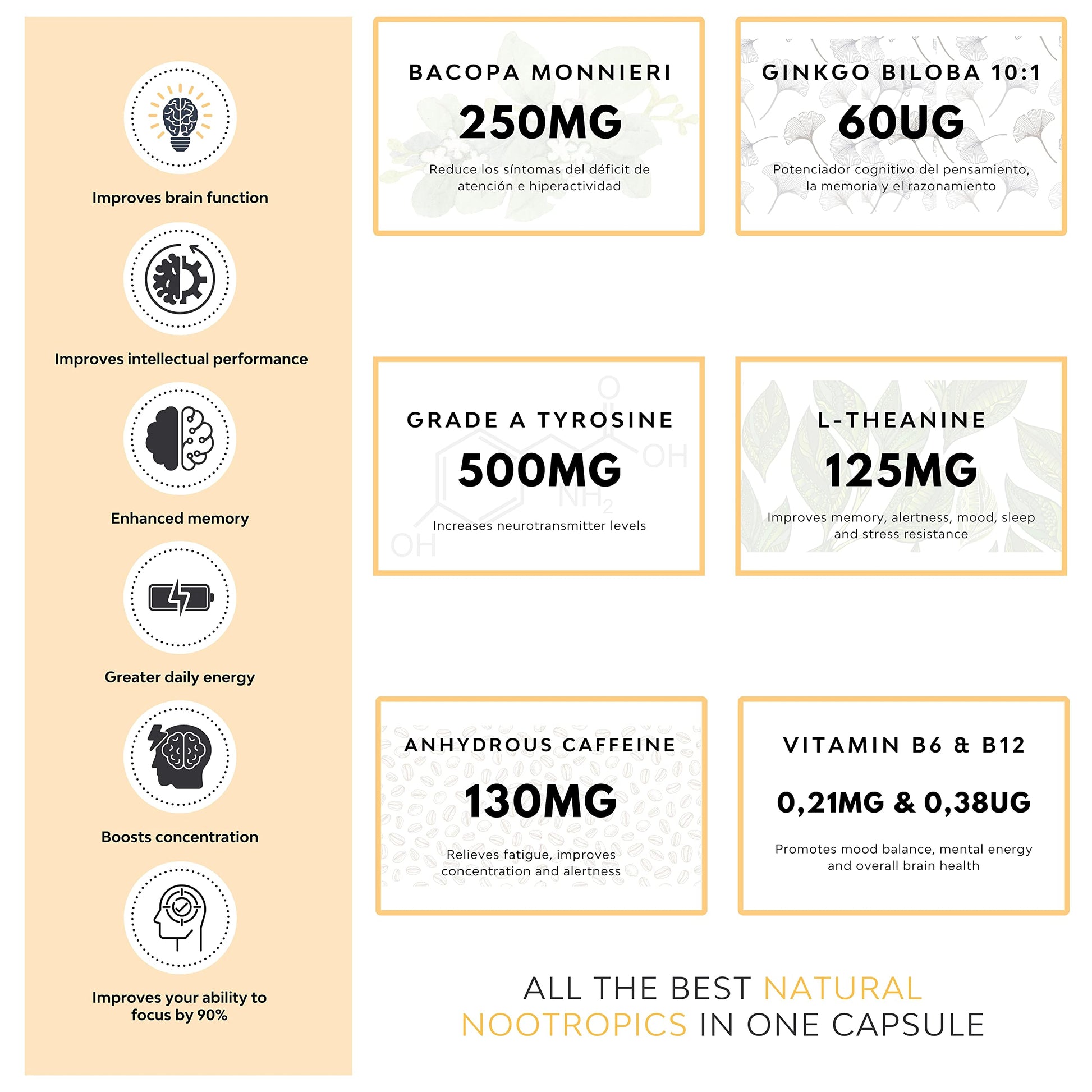 Very High Potency to Increase Intellectual Performance, Daily Energy, Concentration, Brain Function, Mental Agility, Focus & Memory for 12 hours a day.More Info