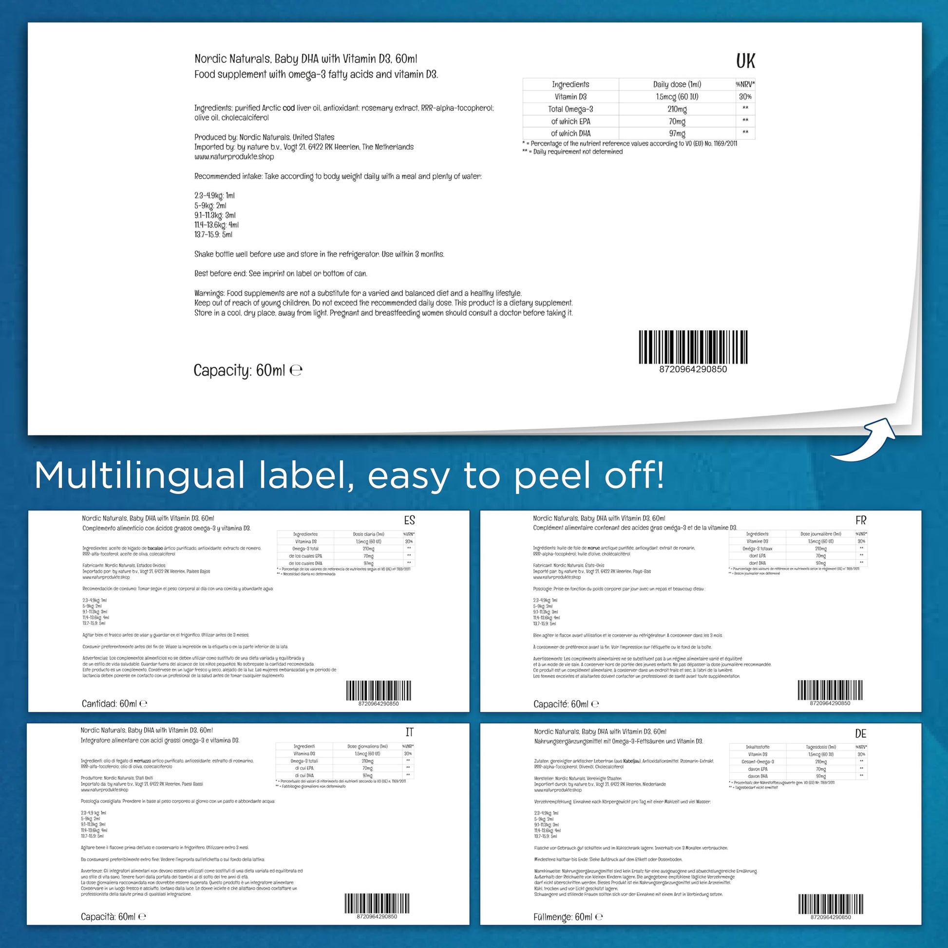Nordic Naturals, Baby-DHA with Vitamin D3, 1050mg Omega-3 from Cod Liver Oil, with EPA and DHA, 60ml, Lab-Tested, Soy Free, Gluten Free, Non-GMO