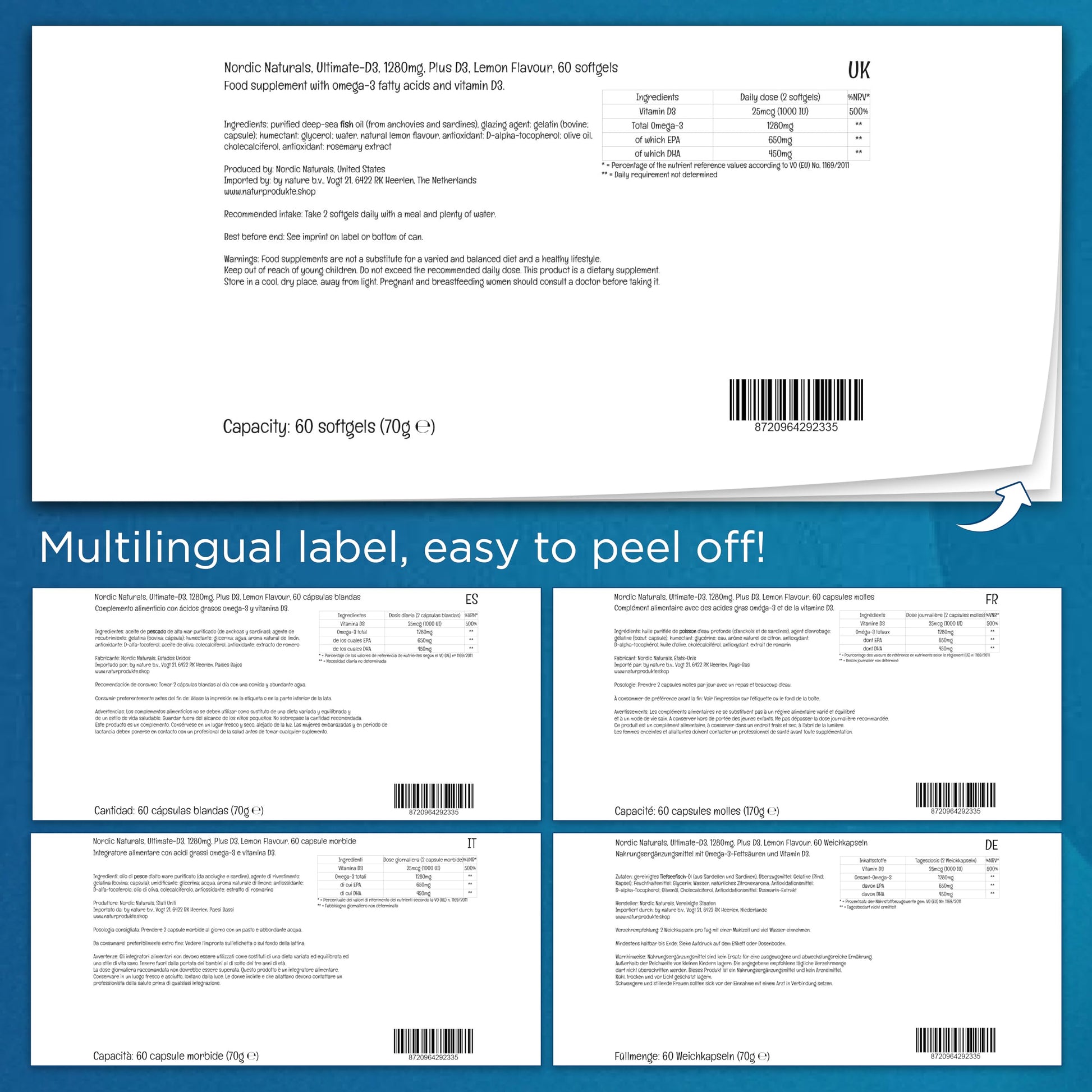 Nordic Naturals, Ultimate Omega-D3, 1280mg Omega-3, with EPA, DHA and Vitamin D3, High Dose, Lemon Flavour, 60 Softgels, Lab-Tested, Soy Free, Gluten Free, Non GMO