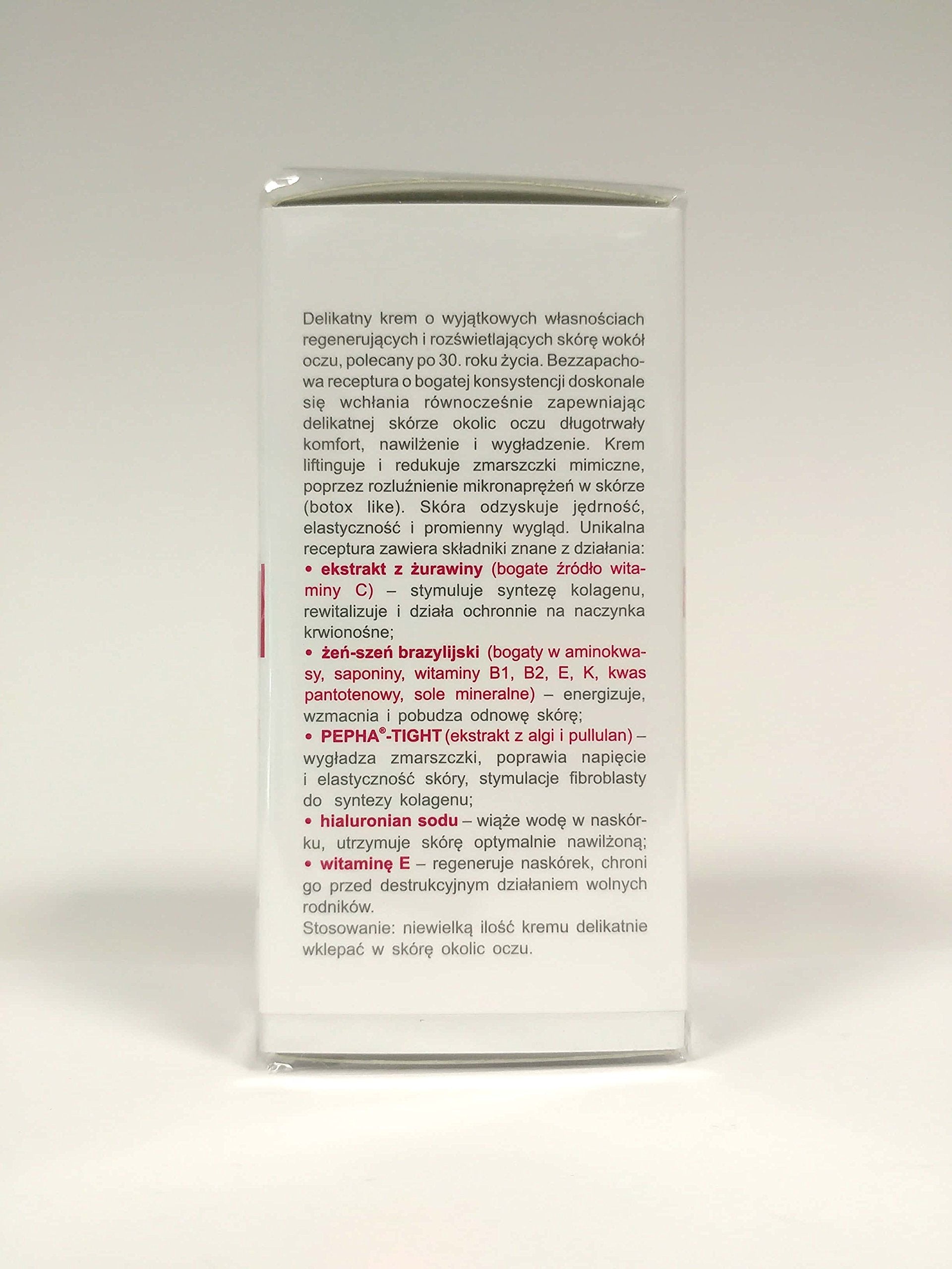- PEPHA-TIGHT (algae extract, pullulan) - it smoothes wrinkles, improves tone and elasticity of the skin, stimulates fibroblasts to produce collagen;