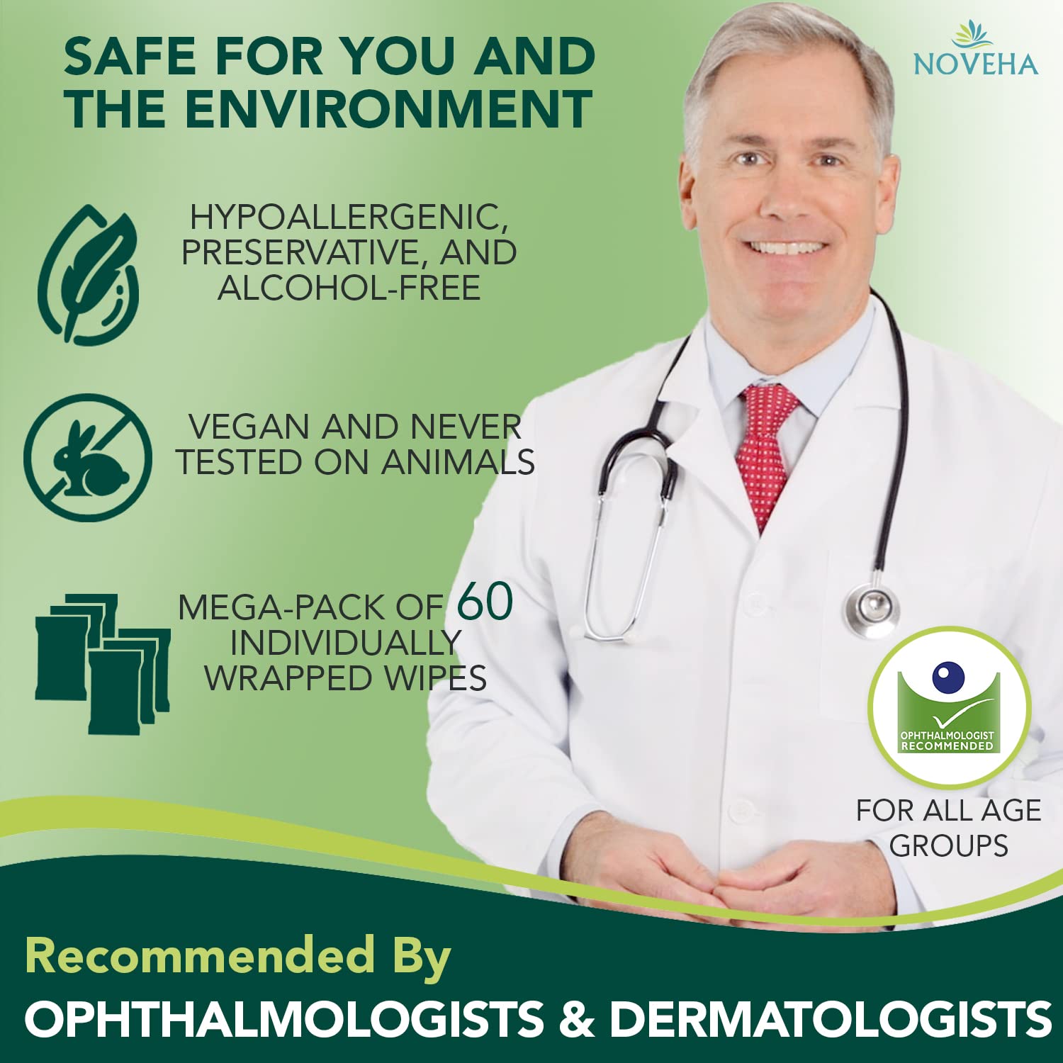 Recommended by dermatologists and ophthalmologists, NOVEHA’s Demodex extra strength eyelid and lash wipes are a must for anyone battling Demodex and other mild to severe eye irritations,