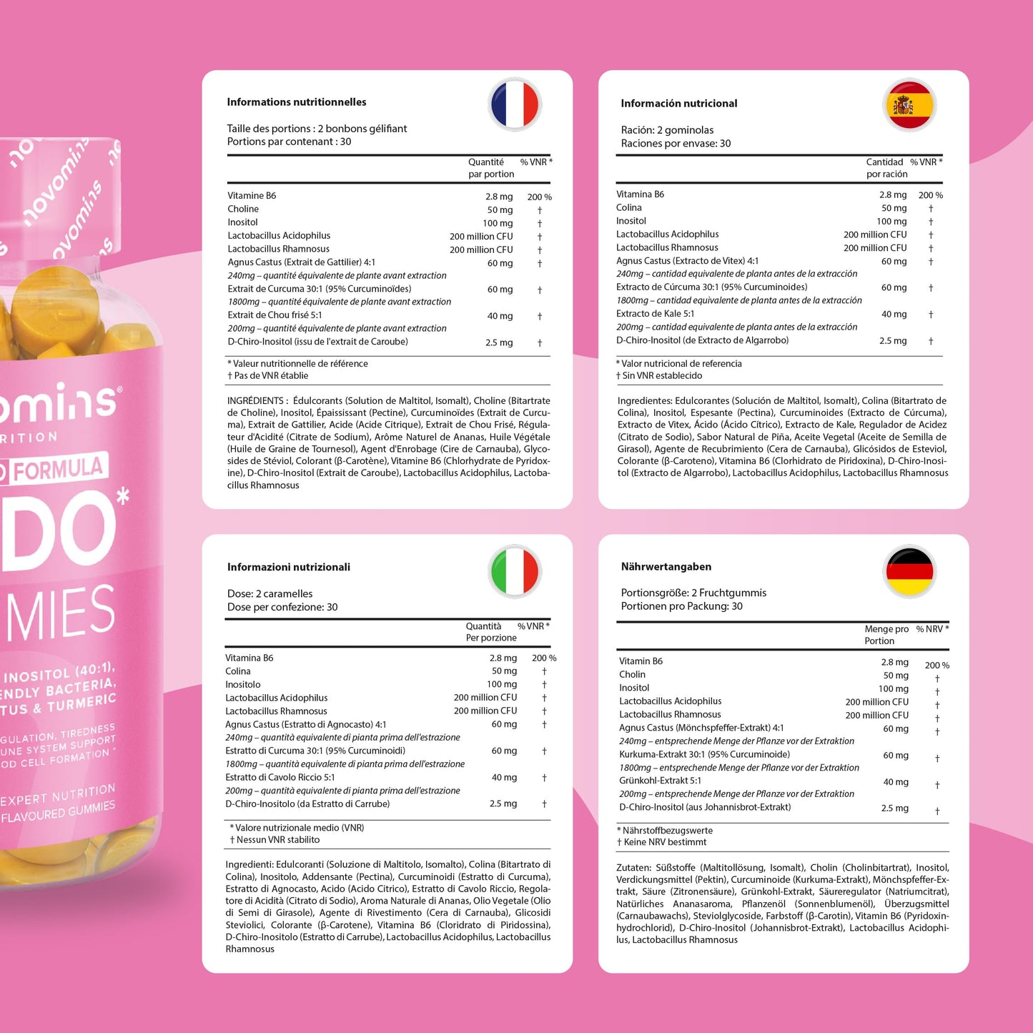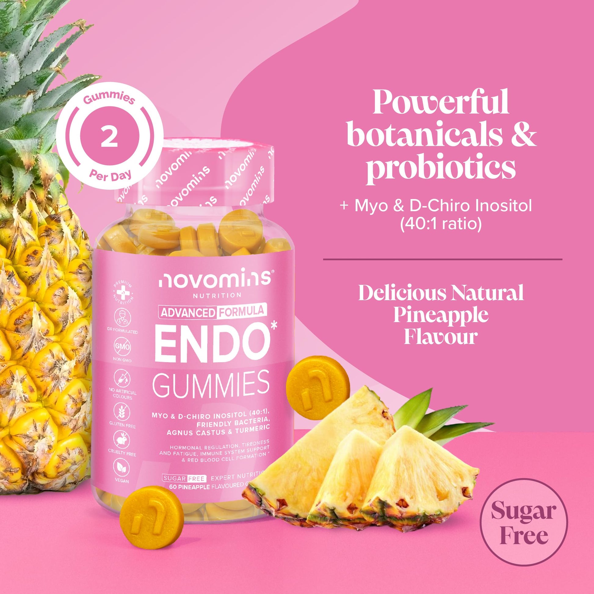 Novomins Endo Gummies - Myo-Inositol & D-Chiro Inositol (40:1), Agnus Castus, Vitamin B6, Turmeric & Probiotics - Vitamins for Women with Endometriosis - Hormonal Balance & Intimate Health - 60 Vegan