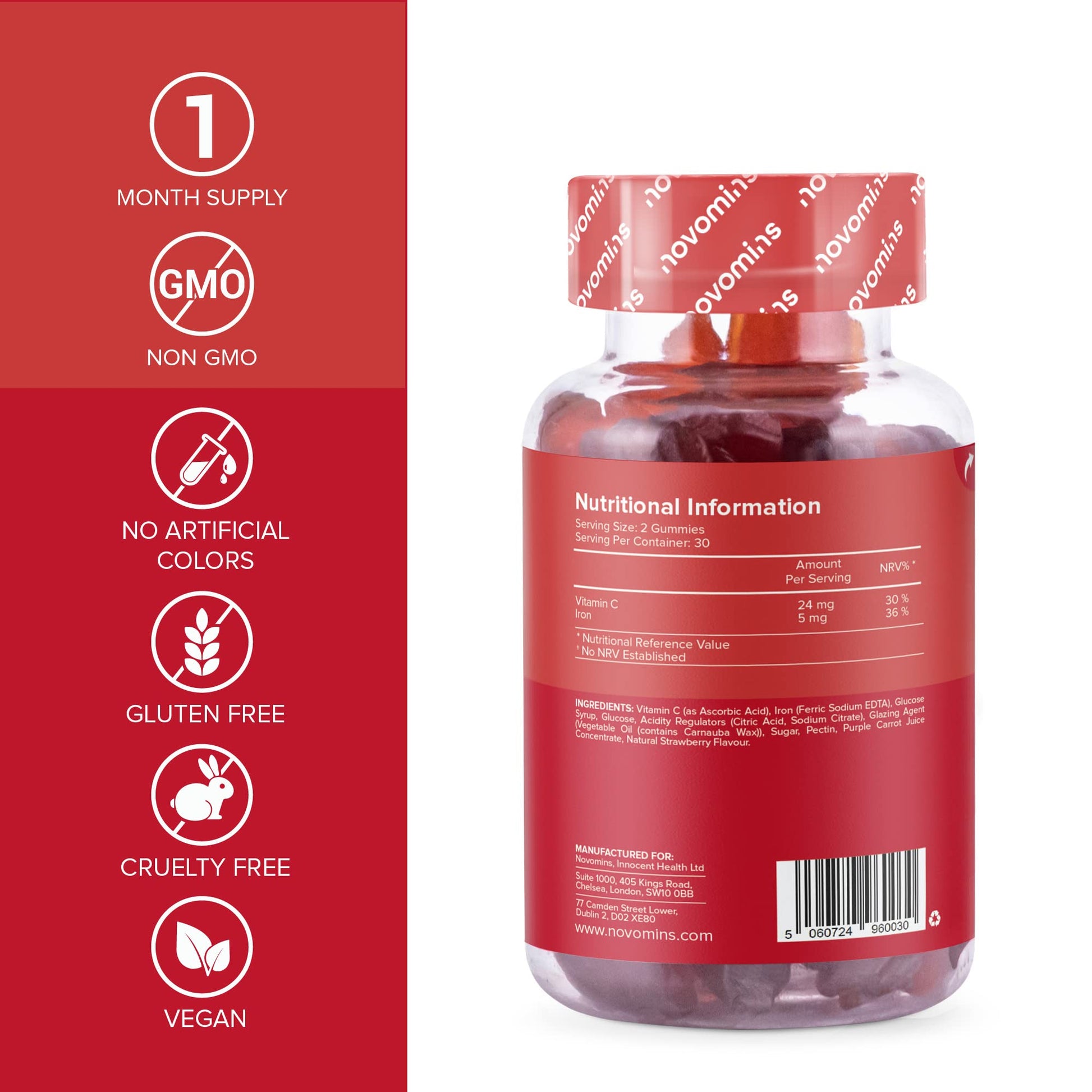 - WHY NOVOMINS IRON GUMMIES: Novomins prides itself in bringing you the highest quality supplements whilst being safe and ethically sourced. Our iron gummies are produced under the strictest manufacturing standards (GMP) with the purest quality ingredient, ethically sourced and easily digestible. We also offer a full money back guarantee if you’re at all dissatisfied with our iron gummies. Simply get in touch via our amazon store.