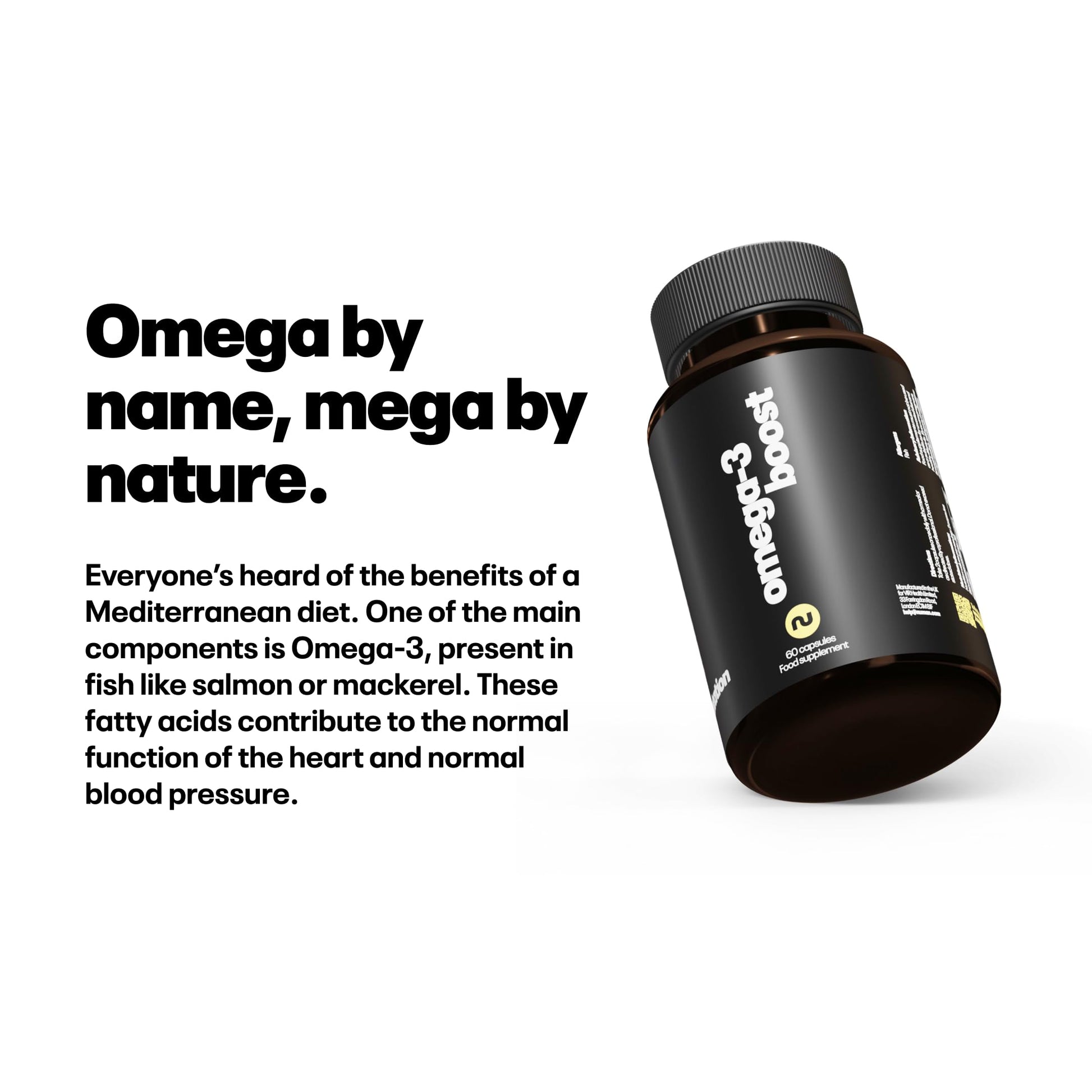 Our high-strength Omega-3 capsules deliver the optimum levels of the essential fatty acids, EPA and DHA. EPA and DHA contribute to the maintenance of normal heart function, brain function, vision, blood pressure, and tryglyceride levels.More Info