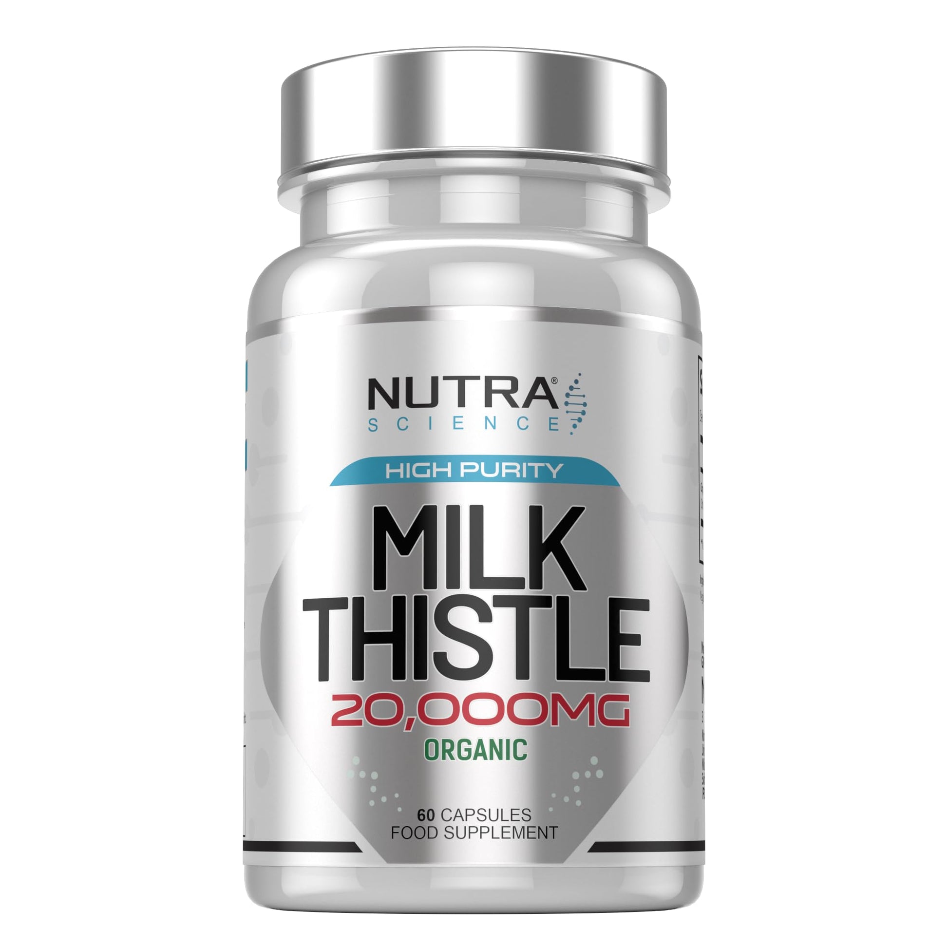 Nutra Science Organic Milk Thistle Supplement (80% Silymarin) 20,000mg – Milk Thistle High Strength Tablets, 60 Vegan Capsules