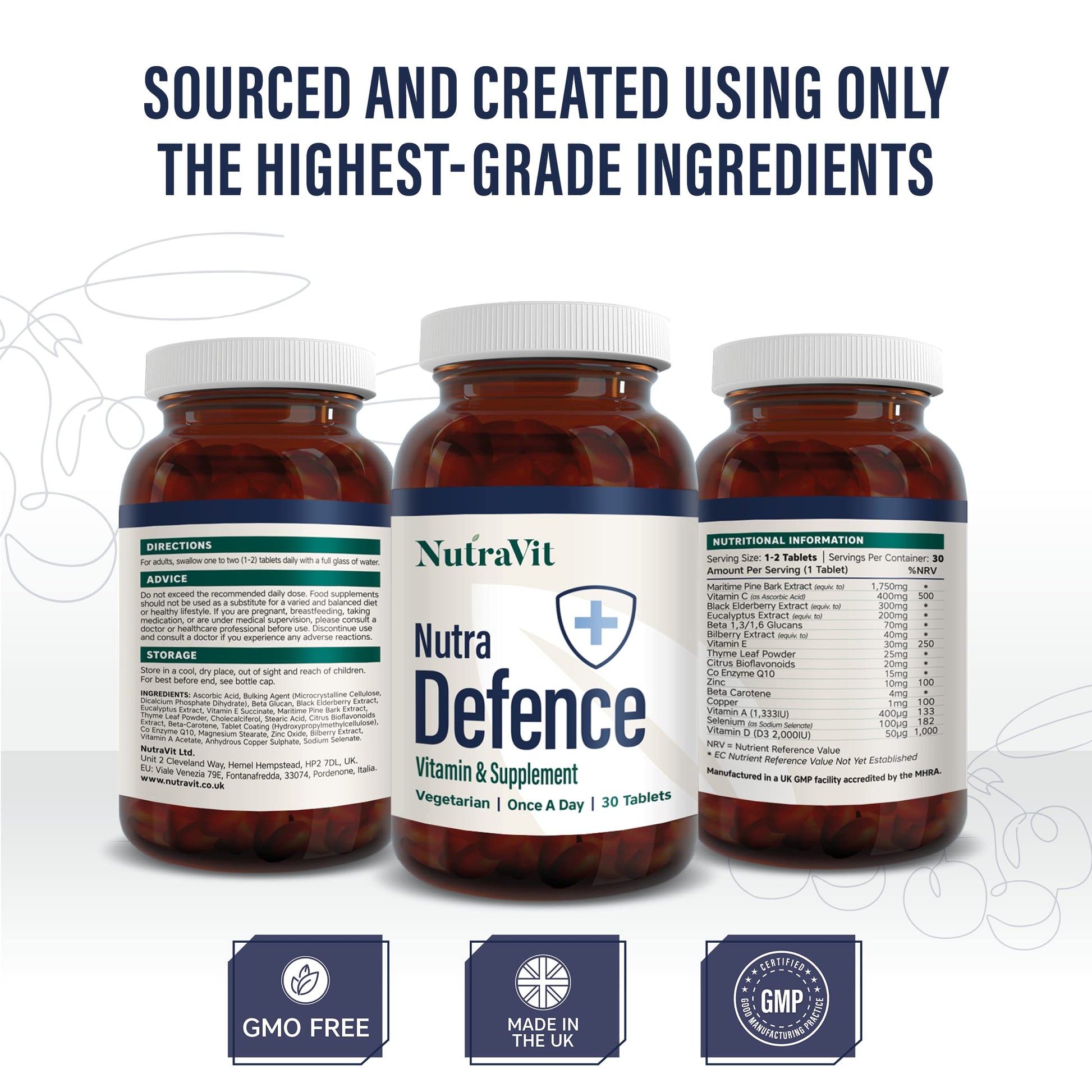 NUTRADEFENCE - Immune System Vitamins | Immune System Booster - 30 Tablets - Immune Support for Cold and Flu - Contains Elderberry, Eucalyptus, Vitamin D, Vitamin C & Zinc - by NutraVit
