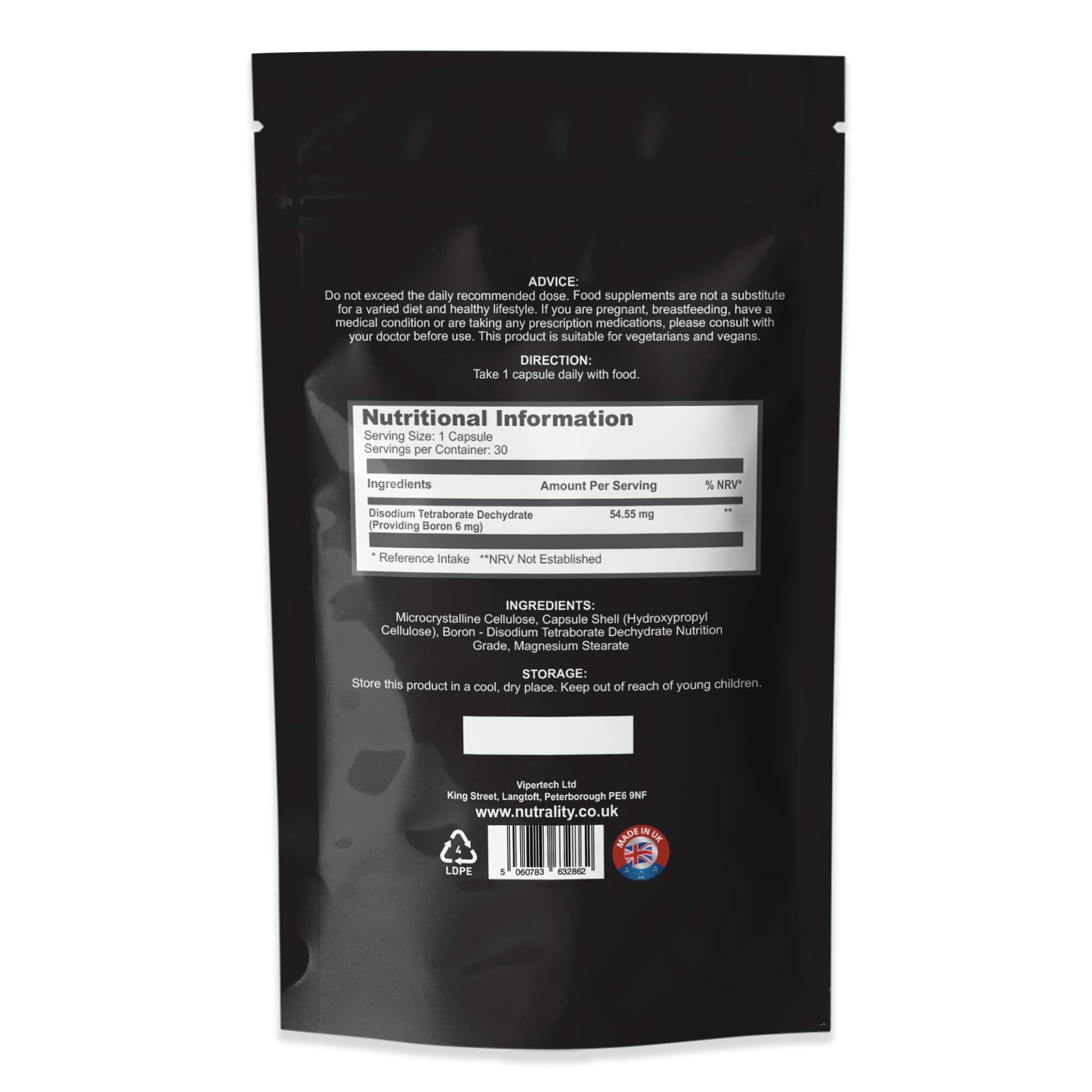 Discover Why You Should Start Supplementing with Boron: Boron is a powerful trace mineral that’s hard to obtain in sufficient amounts from plant-based foods alone. That’s where Nutrality comes in! Instead of trying to eat your way through piles of kale or spinach, our boron supplement delivers 3mg of this essential mineral in a single, easy-to-swallow capsule. Boron plays a crucial role in maintaining strong bones and teeth, supporting gum health, and even aiding in wound healing. For women, its ability to upregulate estrogen makes it particularly beneficial during menopause, helping to alleviate symptoms and support overall well-being. Additionally, boron is known to enhance cognitive function, making it an all-around vital supplement for your daily routine.More Info