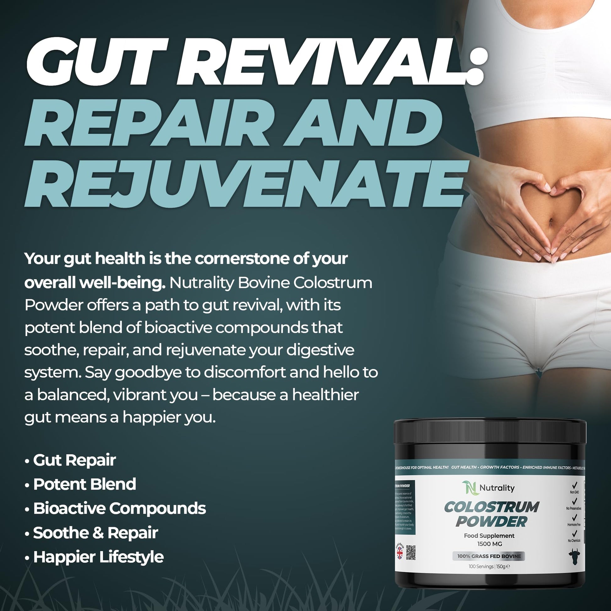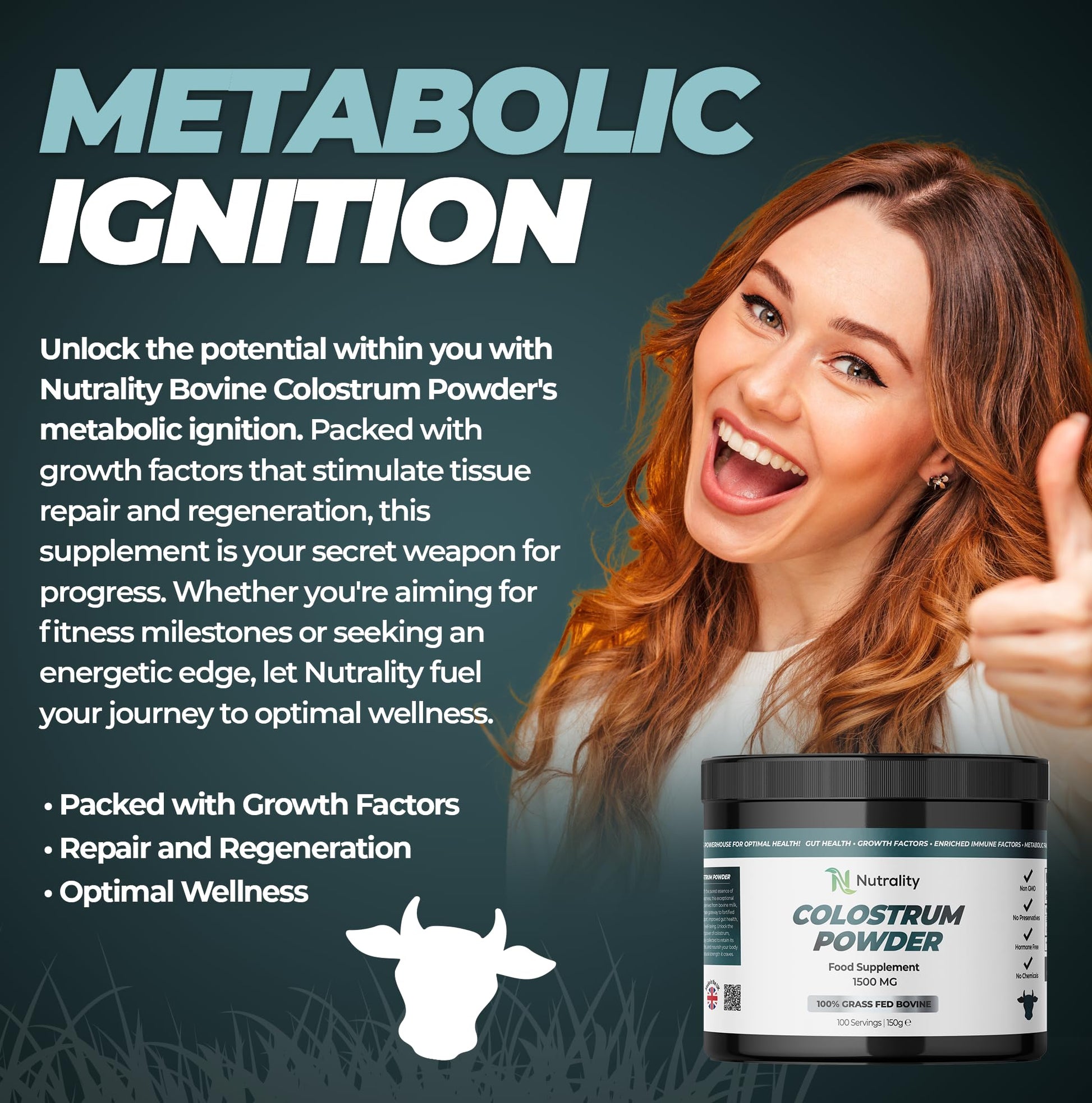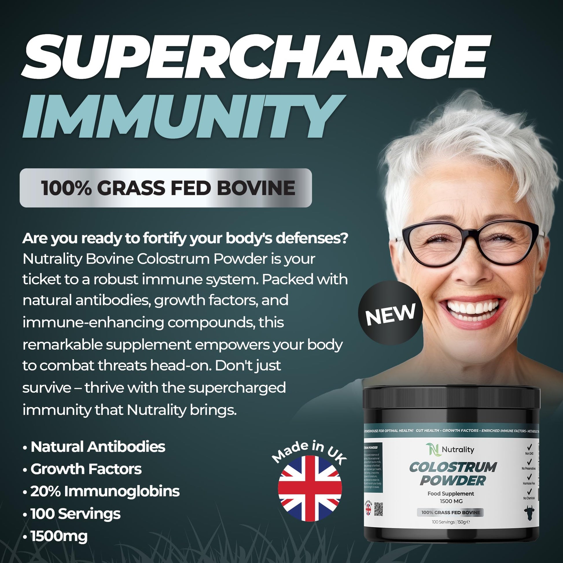 Nutrality Bovine Colostrum Powder 1500mg 150g | Immune Support, Gut Health, 100% Grass Fed Bovine, Growth & Metabolic Factors, Optimal Wellness | No Preservatives & Hormone-Free