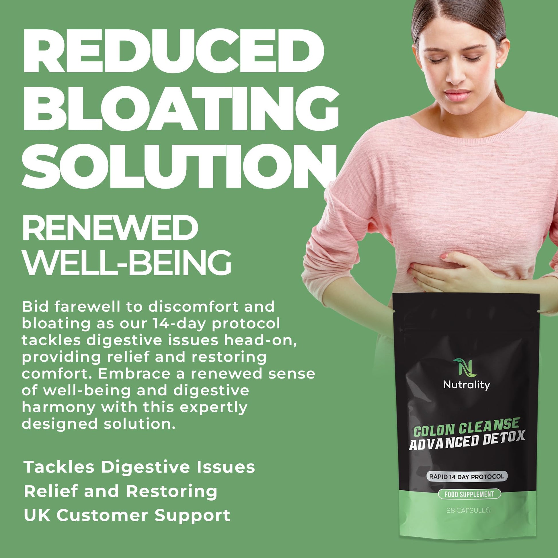 Nutrality Colon Cleanse Advanced Detox Supplement | 14-day Rapid Protocol for a Healthier You | Laxative for Constipation Relief, Stool Softener 100% Natural | Vegan | 28 Capsules