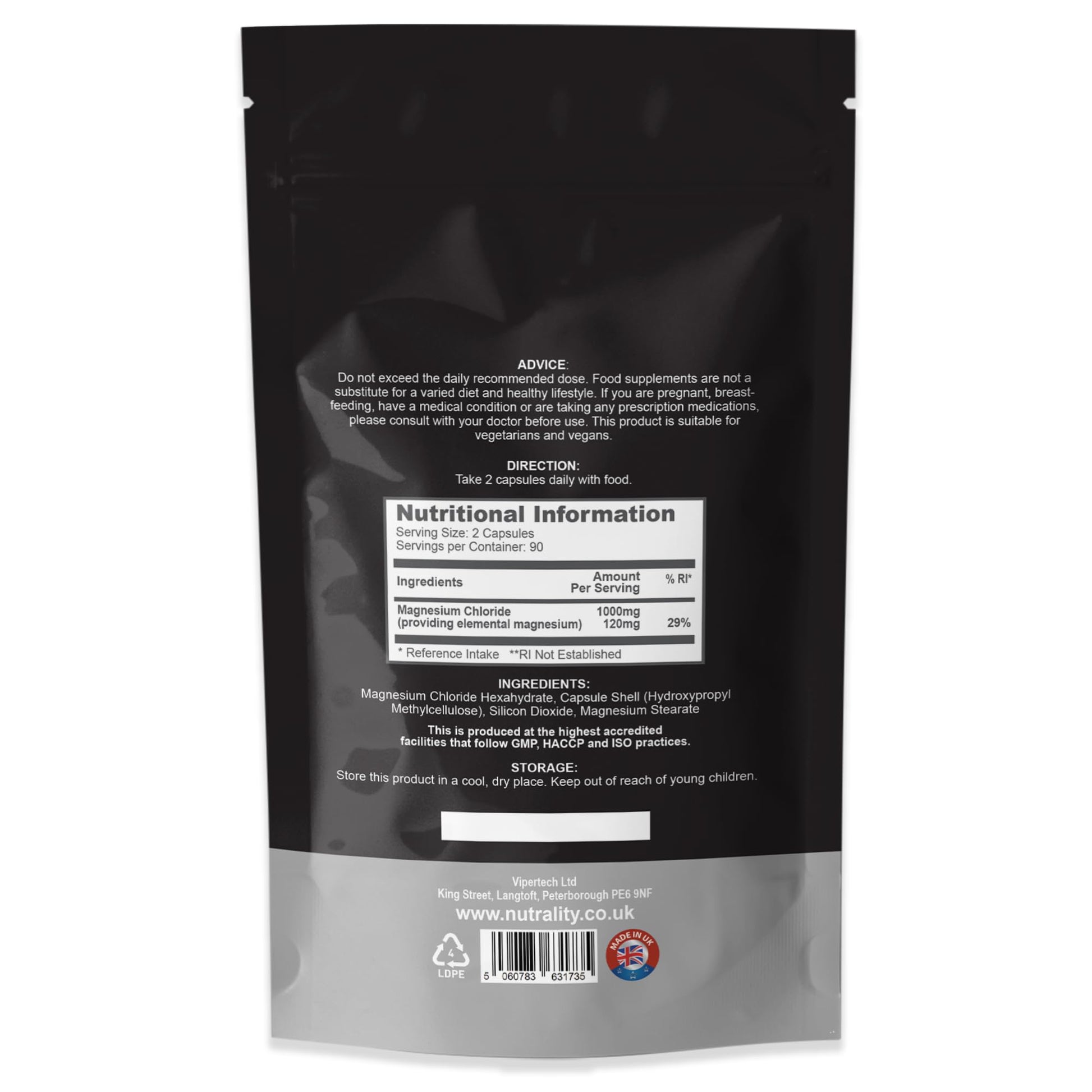 Magnesium chloride is commonly used as a food supplement to provide additional magnesium to the diet. Magnesium is an essential mineral that plays a vital role in numerous biochemical processes in the body. It is involved in over 300 enzymatic reactions and contributes to the proper functioning of various systems, including the nervous system, muscles, and cardiovascular system. The main purpose of taking Nutrality Magnesium Chloride as a supplement is to ensure an adequate intake of magnesium, especially for individuals who may have a deficiency or those with increased magnesium needs. Some people may have an increased risk of magnesium deficiency due to factors such as certain medical conditions, dietary restrictions, or medication use.More Info