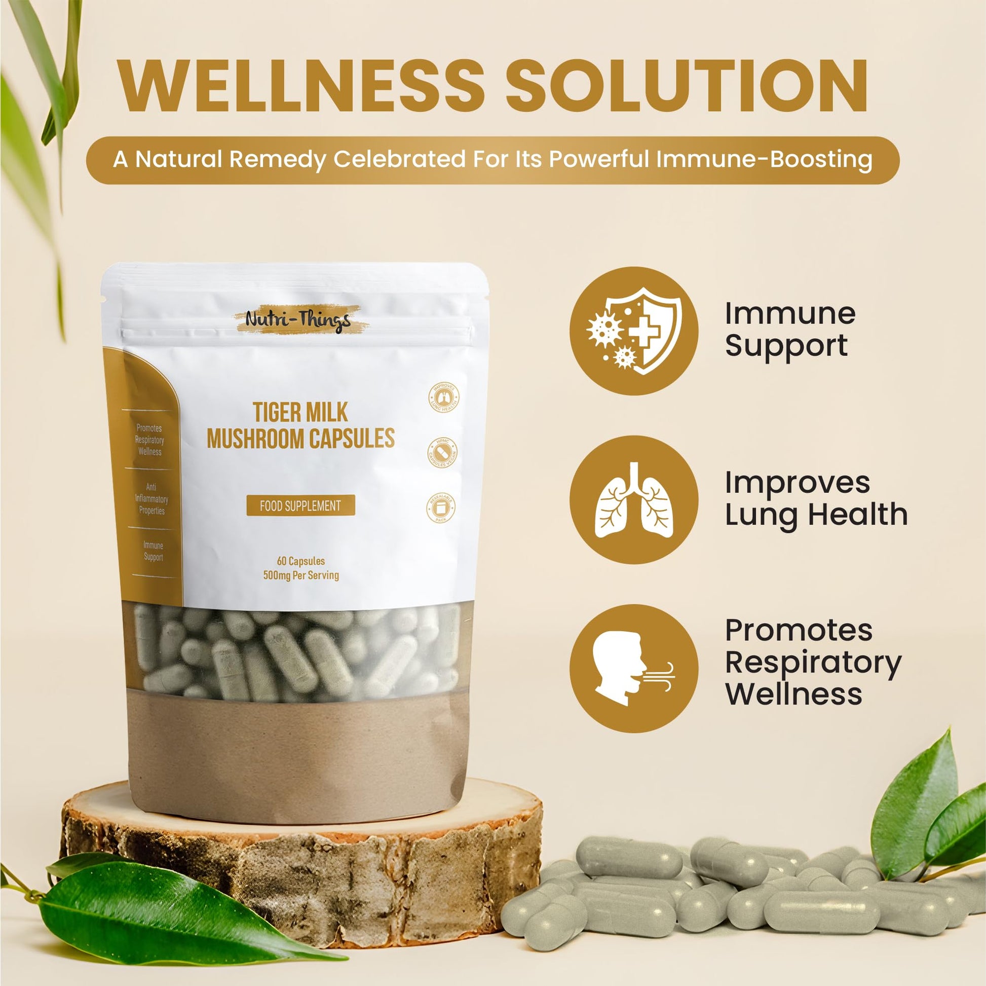 Incorporate these capsules into your daily routine and feel the difference as they work to fortify your health, enhance your immune response, and bring balance to your everyday life. Embrace a natural approach to wellness with Tiger Milk Mushroom Capsules, and 'Elevate Your Health' in the most holistic way possible