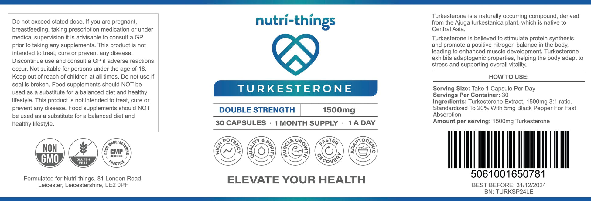 With 1500mg of this powerful compound in every capsule, we have created a product that not only fosters muscle growth but also aids in faster recovery. The adaptogenic nature of turkesterone helps in overall wellness, allowing you to tackle physical and mental stressors with ease.