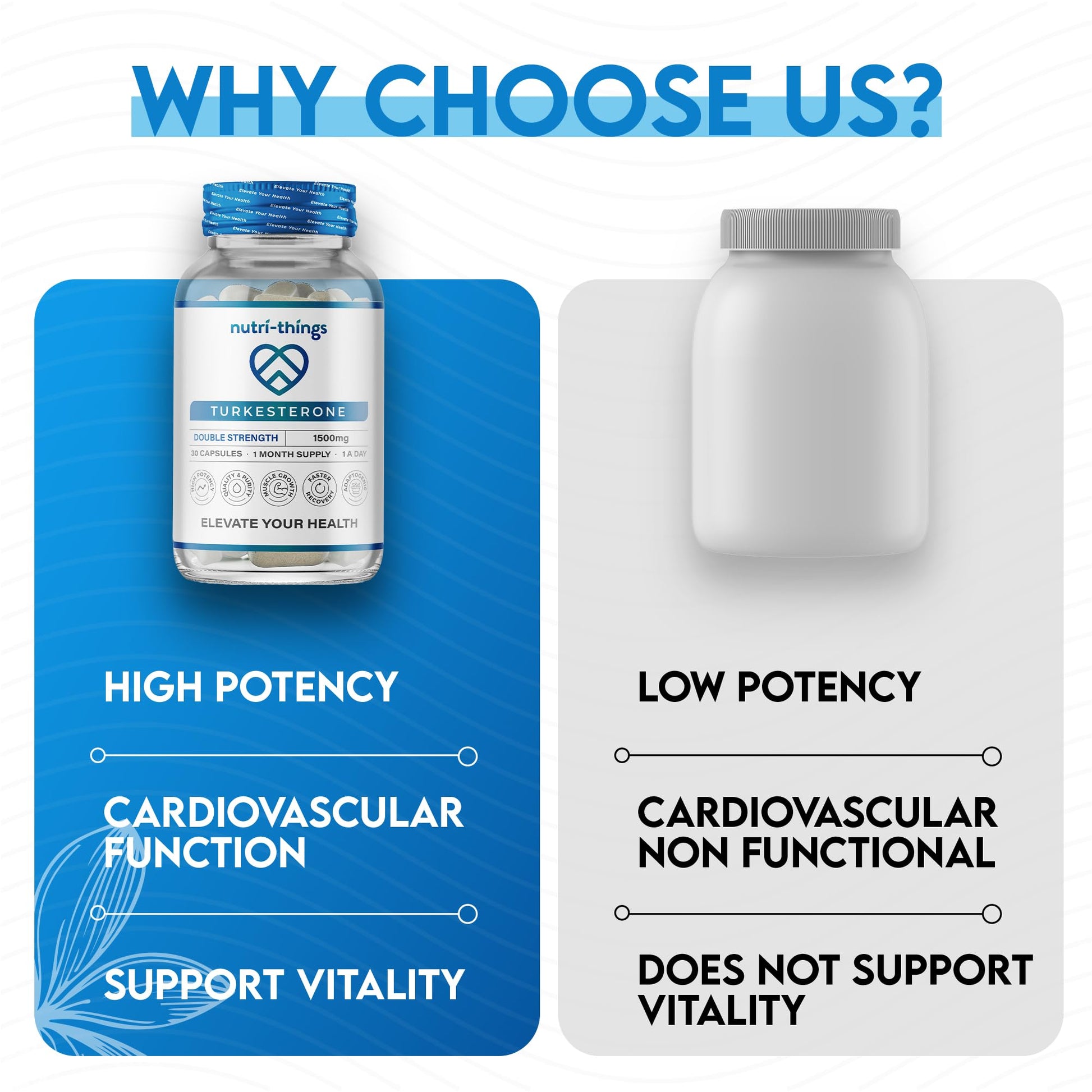 Whether you're an athlete striving for peak performance or simply seeking a boost in vitality and health, our Turkesterone capsules offer a natural solution tailored to your needs. Add our Double Strength Turkesterone Capsules to your daily routine and experience the positive transformation in your well-being.