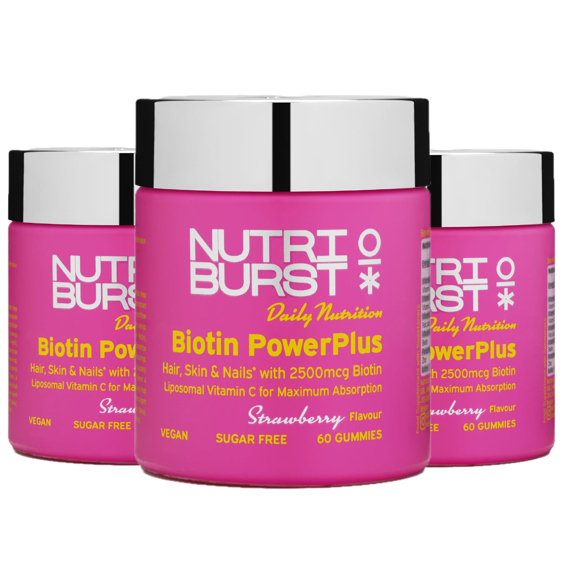 Nutriburst Biotin Power Plus Multipack - Biotin (2500mcg) + Liposomal Vitamin C for Healthy Hair & Glowing Skin - Strawberry Flavour - 3 x 60 Gummies / 3 Month Supply - Suitable for Vegans