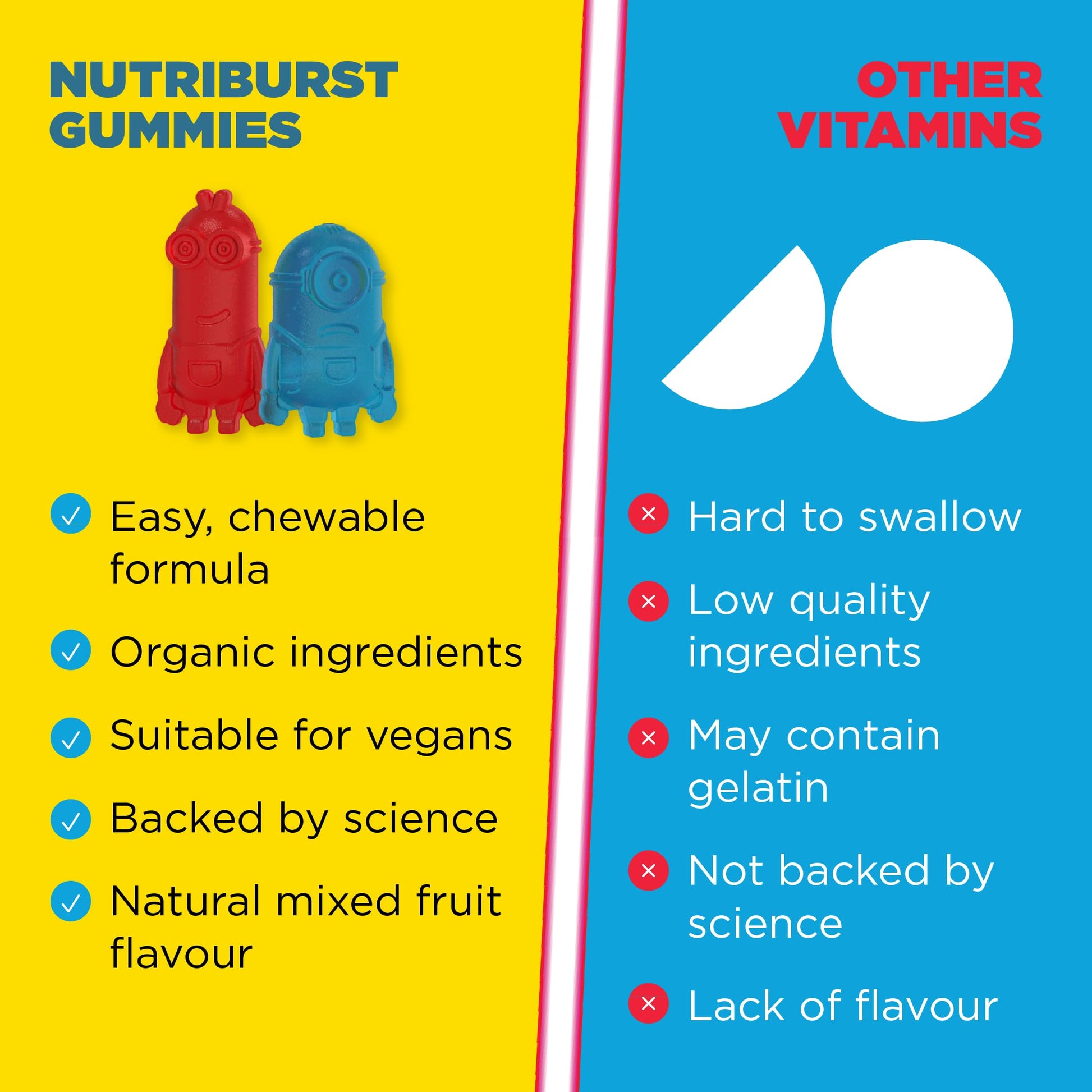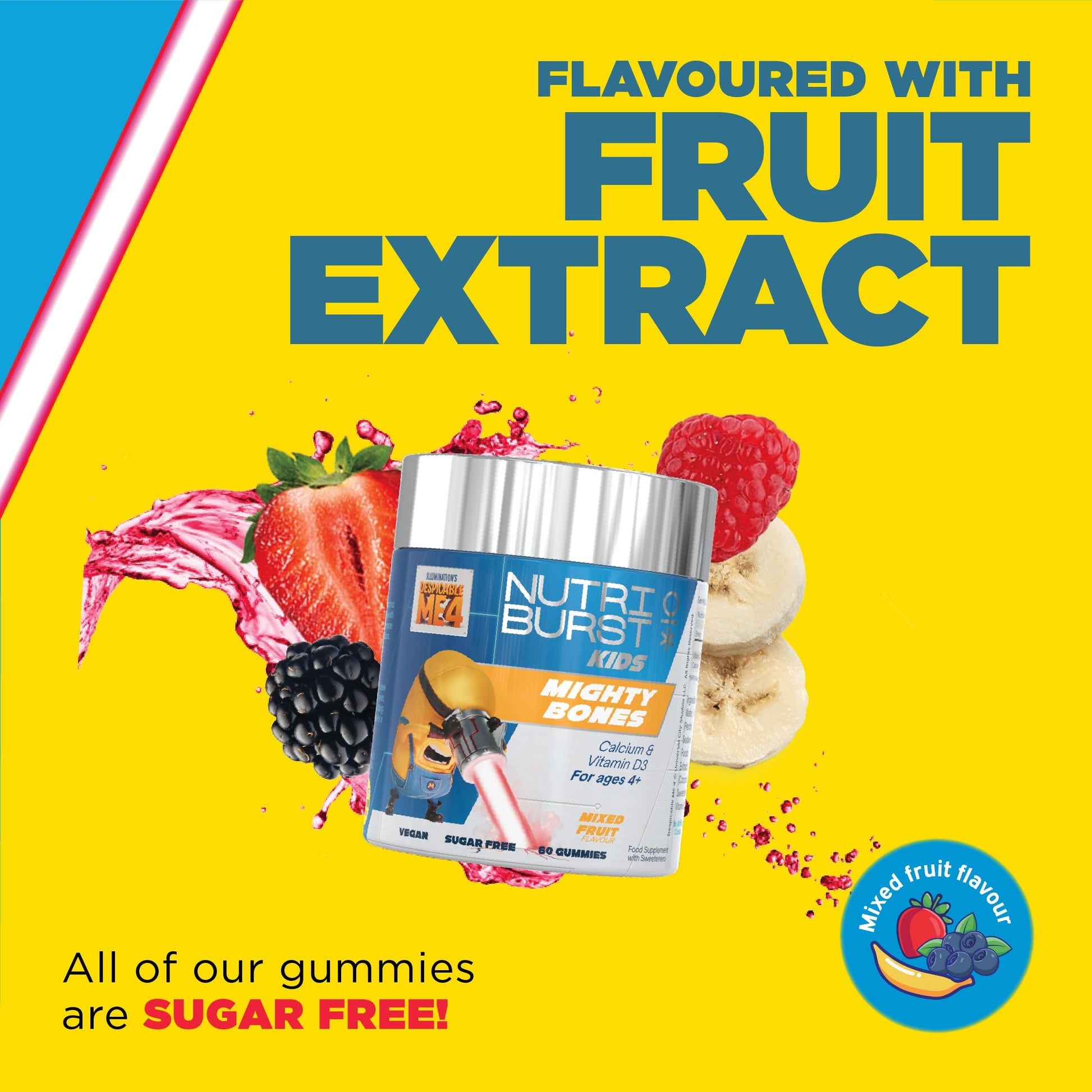 Nutriburst Minions Mighty Bones Vitamins for Kids - Chewable Vitamin D3 + Calcium Gummies for Healthy Bone Development - Vegan + Sugar Free - Fruity Flavour - 60 Gummies