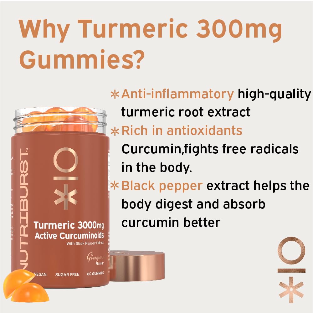 Our mission: "developing comprehensive, nutritional supplements with sustainability at the forefront of everything we do. Making a positive change in the lives of the people we touch.” Making leading-edge, advanced nutrition available to everyone in a format that meets the needs of a diverse and changing world. Nutriburst was formed out of a desire to produce vitamins that are the perfect supplementation to the human body alongside being manufactured responsibly in an Earth-positive way so that we’re able to continually reduce our impact on our environment and on the various ecosystems that impact our production cycle. We are committed to perfecting our practices to use the Earth's resources responsibly, without polluting the environment, eliminate wastage and supplement our resource consumption by giving back to our various ecosystems so that in effect, we are giving more than what we take. We are continually working on our processes to achieve a net increase in soil depletion, zero net water wastage, net reduction in emissions, and a net zero carbon footprint. Our Turmeric Curcumin is enhanced with black pepper to significantly increase the absorption of Curcumin, the active component of Turmeric, giving you better results. Our Nutriburst Turmeric gummies contain standardised extract combined plus added Black Pepper Extract. With ConcenTrace ionic trace minerals from the Great Salt Lake in Utah. Turmeric is a vibrant yellow spice that forms a central part of cooking in Asia. This rich colour reflects the active components of the spice, called curcuminoids. Curcuminoids are guaranteed to make up 95% of this high-quality Turmeric Root Extract selected by the team. Black Pepper Extract is a highly effective combination with Turmeric extract and has been shown to increase your ability to absorb turmeric into your body to make it available for use.More Info